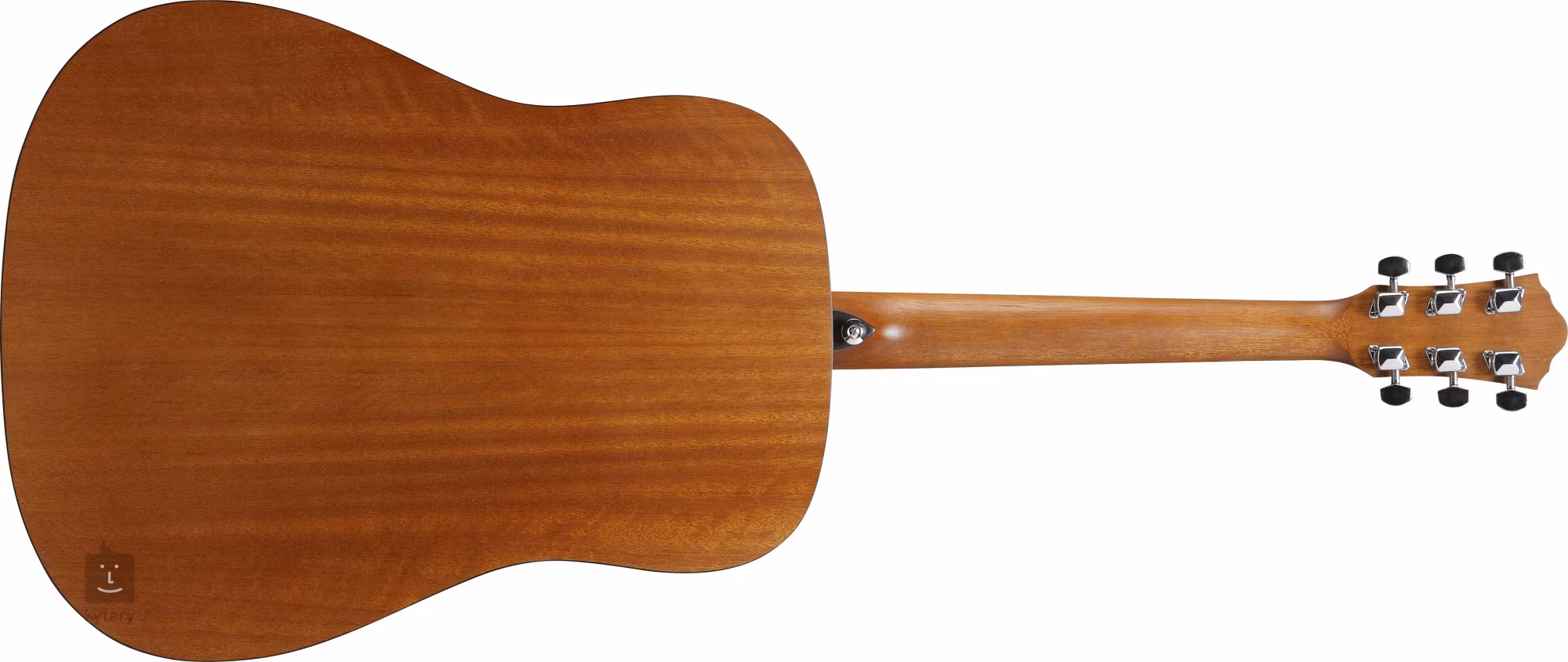 La plaque avant de la guitare acoustique V40-OPN est en épicéa stratifié, tandis que la plaque arrière et les éclisses sont en méranti stratifié. Le manche en méranti est collé à une touche en nandu avec 20 frettes. Des points de positionnement blancs sur la touche facilitent l'orientation.