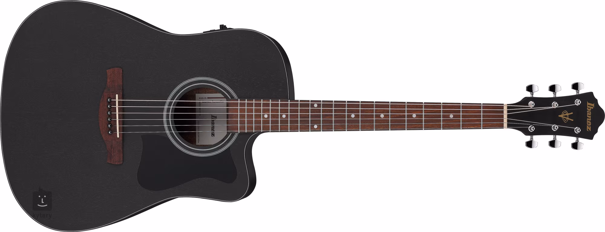 L'harmonisation de l'instrument est assurée par un micro piézo sous le corps et un préamplificateur Ibanez AEQ-2T avec un égaliseur à deux bandes et un accordeur intégré. Les cordes sont montées sur des mécaniques chromées et une touche en bois de nandu. Les chevilles Advantage d'Ibanez offrent l'avantage d'une manipulation facile et d'un ajustement solide des cordes par rapport aux modèles standard. La finition élégante est accentuée par la couleur Weathered Black Open Pore et le pickguard noir.