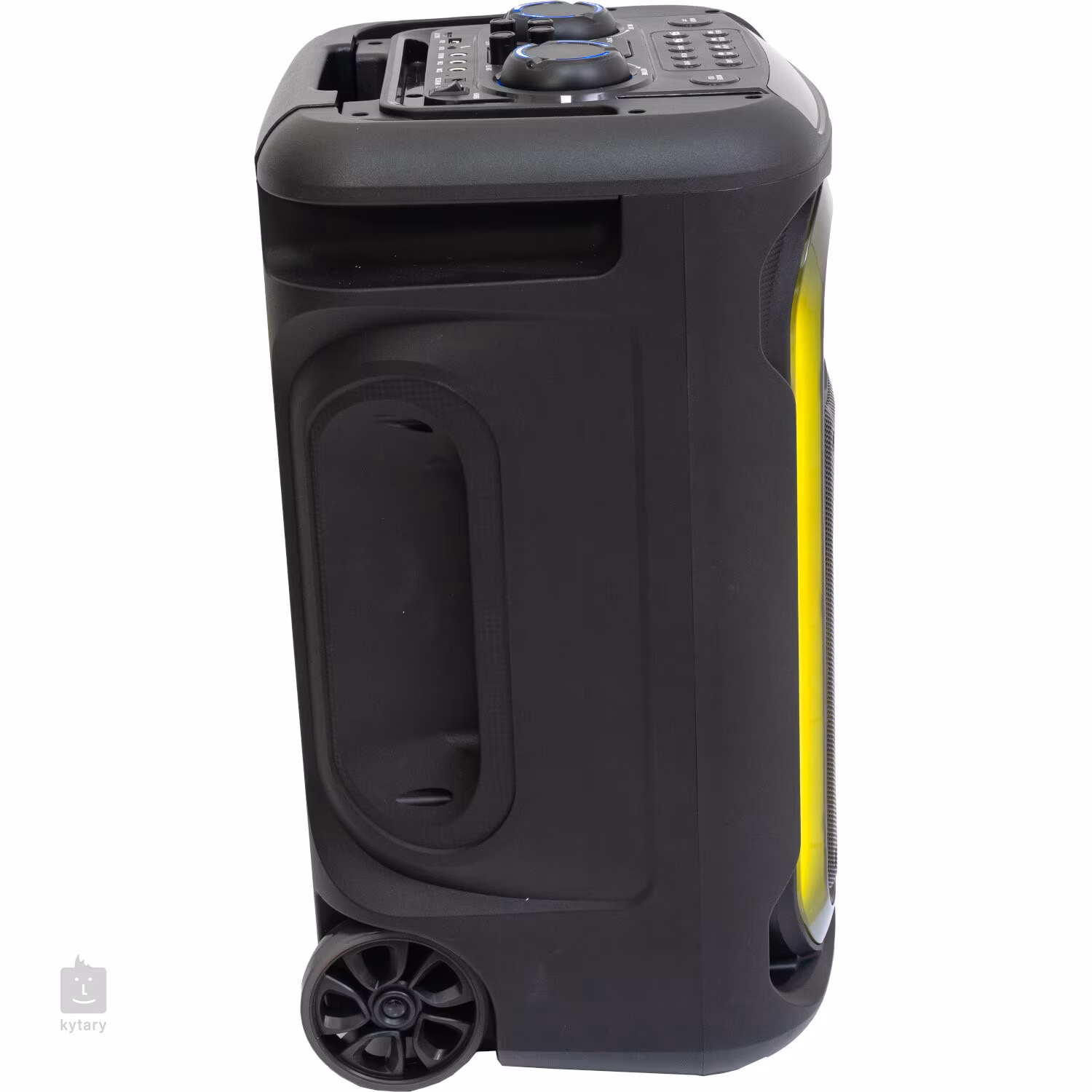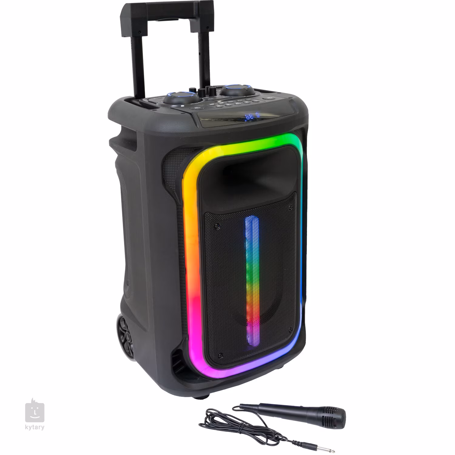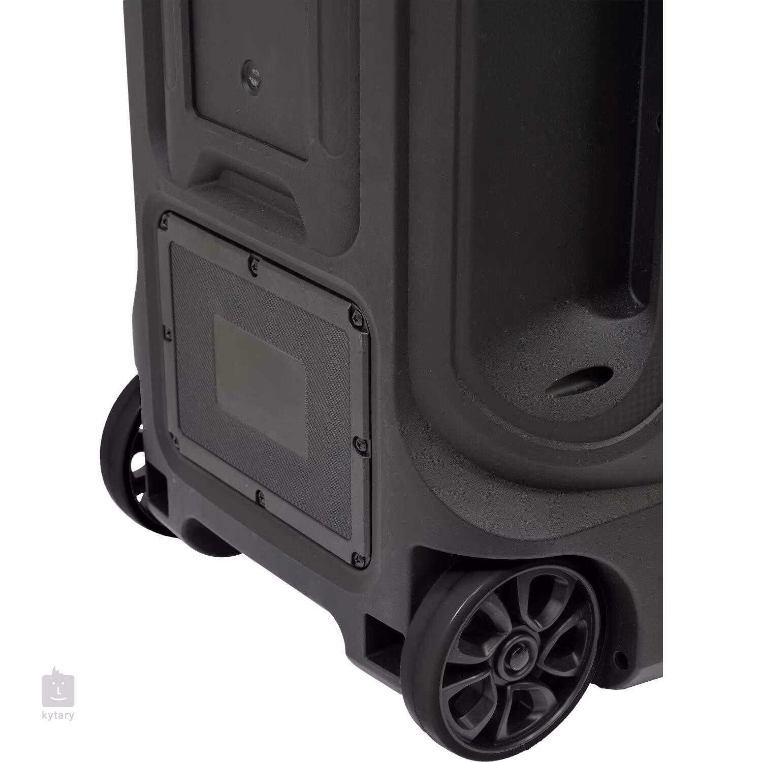 Le MOBILE800 est une enceinte bluetooth active/un système de karaoké portable avec une batterie rechargeable intégrée (plomb-acide 12V 7A) qui donnera le coup d'envoi de n'importe quelle soirée karaoké - il suffit de brancher le microphone inclus et la fête peut commencer. Il offre plusieurs programmes de rétroéclairage LED ou un fonctionnement sans rétroéclairage, la fonction TWS (true wireless stereo) permettant de connecter deux enceintes MOBILE800 via Bluetooth, deux entrées micro et une entrée instrument/guitare avec commandes de volume séparées, un égaliseur à deux bandes et une fonction d'amplification des basses, des effets micro écho et retard, des entrées microSD, USB et Aux, la compatibilité Bluetooth et un fonctionnement sur la batterie intégrée susmentionnée ou via le bloc d'alimentation inclus. Les roulettes et la poignée rétractable facilitent la manipulation de l'enceinte.