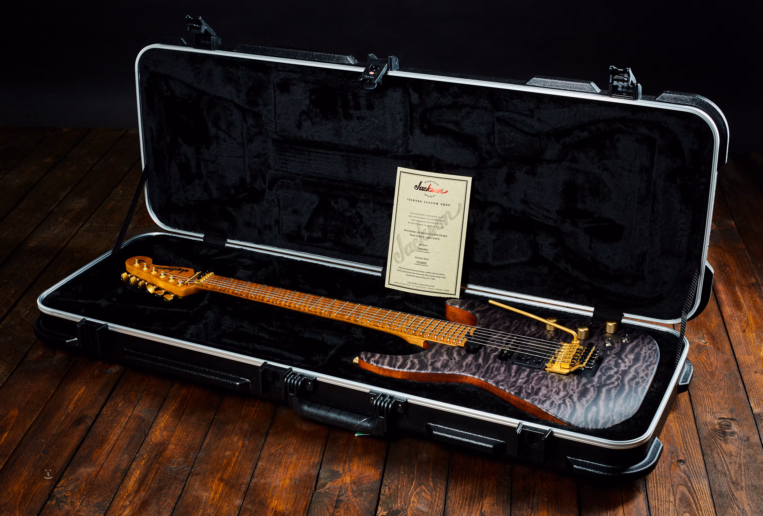 Guitare presque neuve fabriquée en 2023 dans le Custom Shop de Jackson aux USA. Absolument en excellent état, pratiquement chargée.