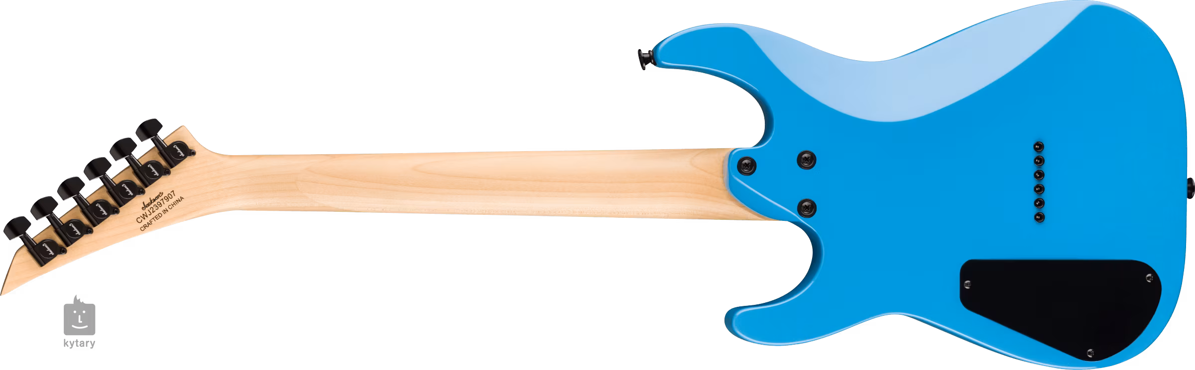 Le corps de la JS1X Dinky Minion Infinity Blue est en peuplier. Une touche en érable munie de vingt-quatre frettes géantes est collée sur le manche en érable vissé. L'orientation sur la touche est facilitée par des repères de position noirs de type Sharkfin.