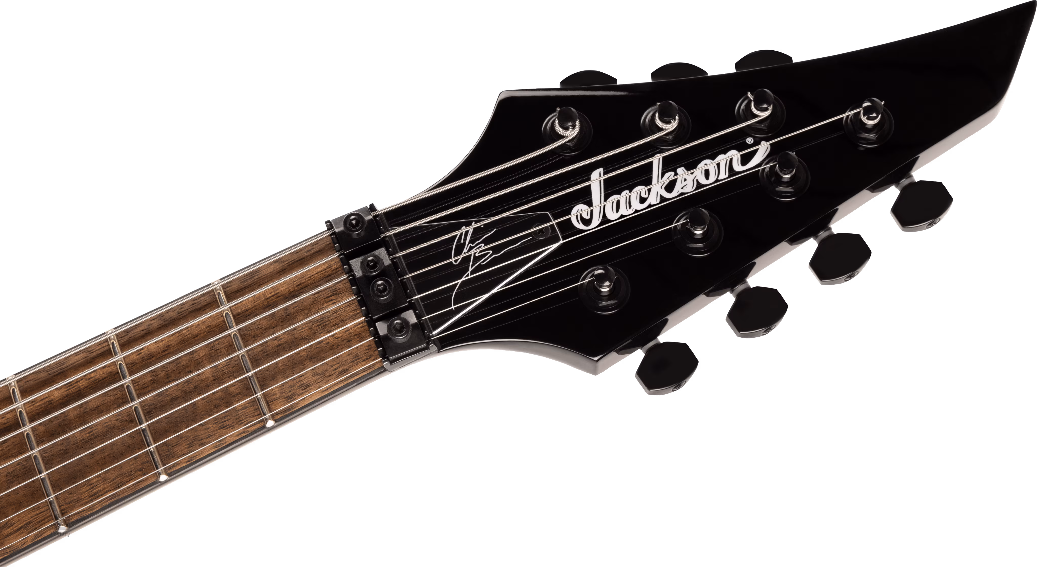 Cette guitare a sept cordes est le modele signature de Chris Broderick (Act of Defiance, In Flames-live, ex-Megadeth). La construction de la guitare consiste en des ailes de corps en acajou et un manche traversant fait d'une seule piece d'érable avec des barrages en graphite. Cette conception a un effet positif sur le sustain de l'instrument. La touche en bois de figuier est équipée de vingt-quatre frettes jumbo-size, et son rayon de douze pouces offre le confort nécessaire pour jouer des solos de guitare ultra-rapides et soutenir des riffs de guitare dans la position zéro frette.