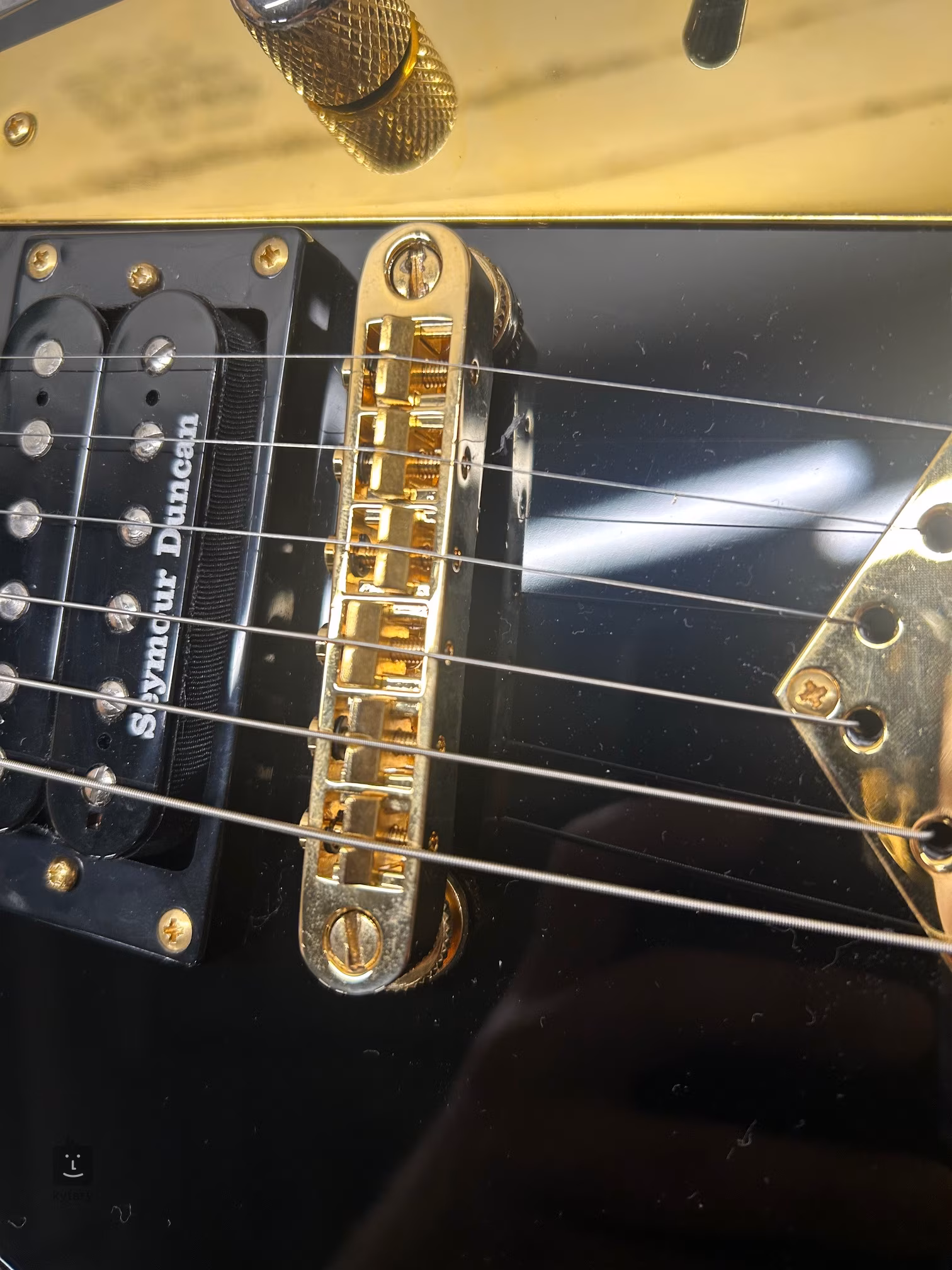 Les cordes sont maintenues dans les mécaniques en fonte de l'entreprise et passent par un chevalet solide de type TOM. Le look élégant est accentué par la finition Gloss Black, les accessoires dorés et le pickguard/plaque de contrôle.