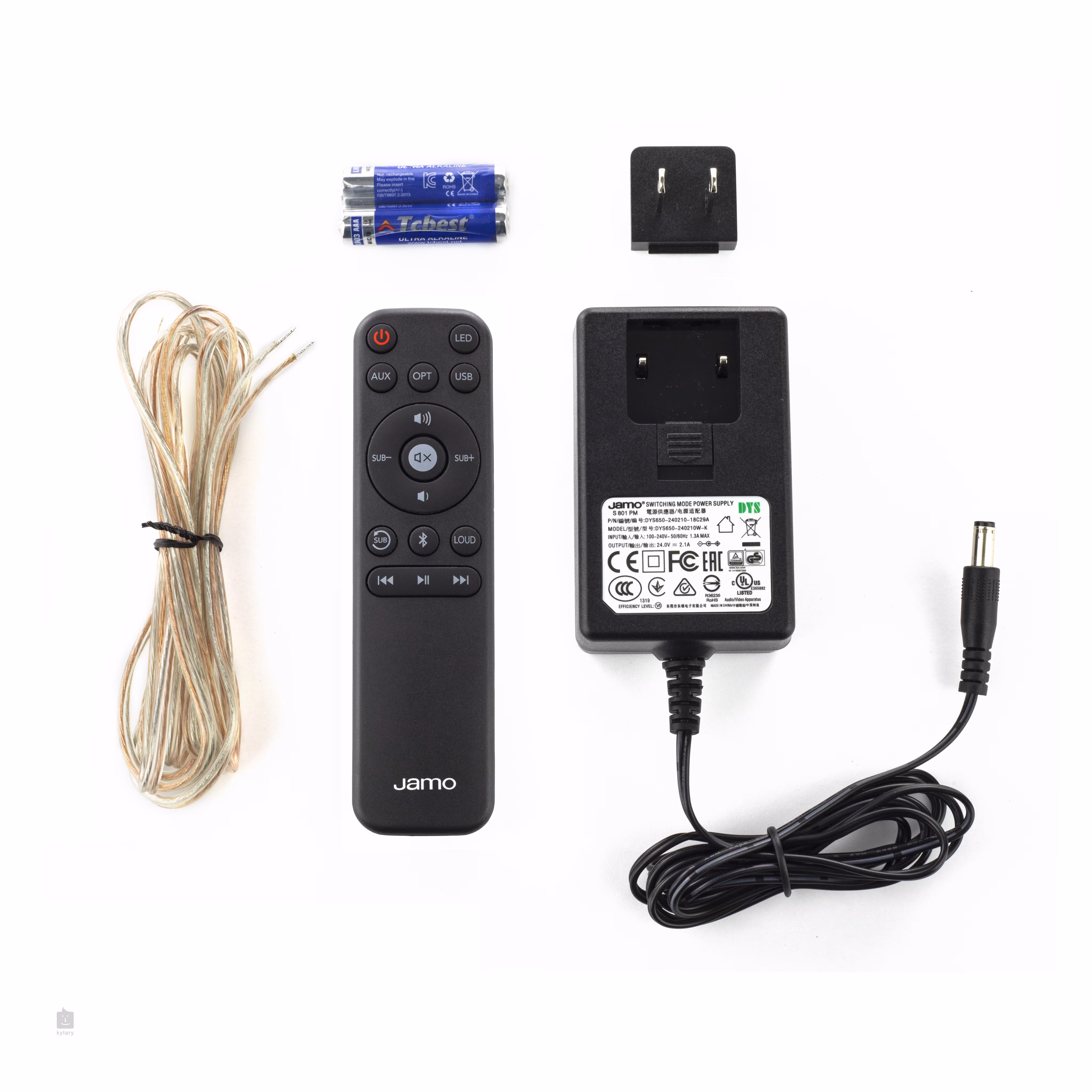 La Jamo S 801 PM est la seule enceinte active de la série Studio 8 et peut être connectée à des PC, des téléviseurs ou des smartphones via la technologie sans fil Bluetooth. Il est doté d'un woofer de 4 pouces et d'un tweeter de 1 pouce, ce qui lui confère une puissance maximale de 120 W. Le panneau arrière comprend une connectivité flexible sous la forme d'un connecteur RCA, d'un connecteur optique, d'un USB, d'une sortie pour caisson de basse ou d'une sortie pour la connexion d'une deuxième enceinte. Les haut-parleurs sont ensuite protégés par une grille d'écran magnétique. L'emballage comprend un câble de haut-parleur, un câble USB, un câble optique et une télécommande.