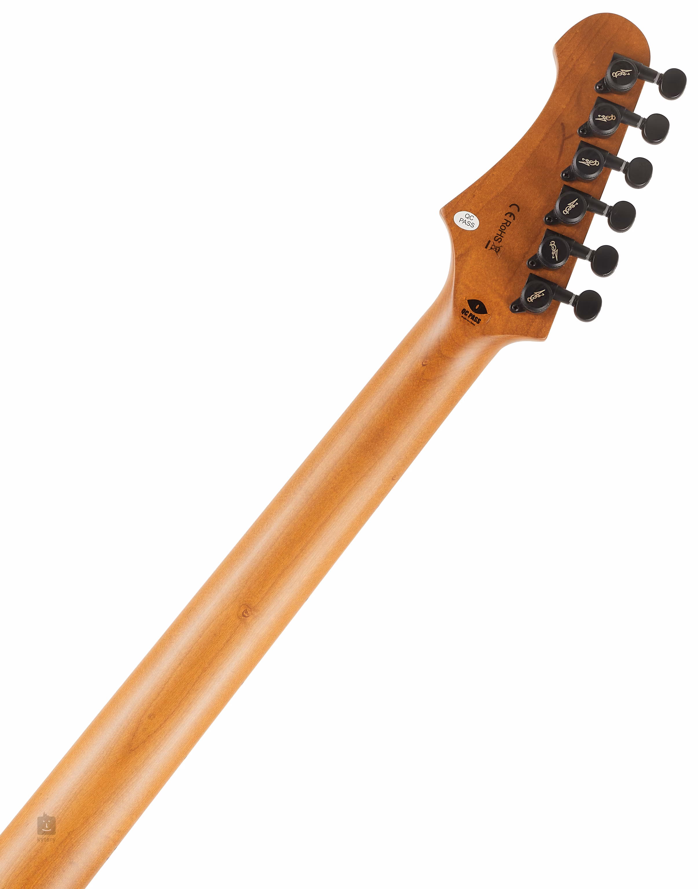 Les guitares électriques Jet JS-500 combinent des éléments de la ST classique et des guitares Super ST plus modernes. Le corps de la JS-500 MBK est en peuplier grillé. Une touche en érable grillé avec 24 frettes est collée à un manche en érable canadien boulonné avec un confortable profil en "C" moderne. Le traitement thermique rend le bois de la guitare plus stable et la touche en érable prend un aspect agréablement doré.