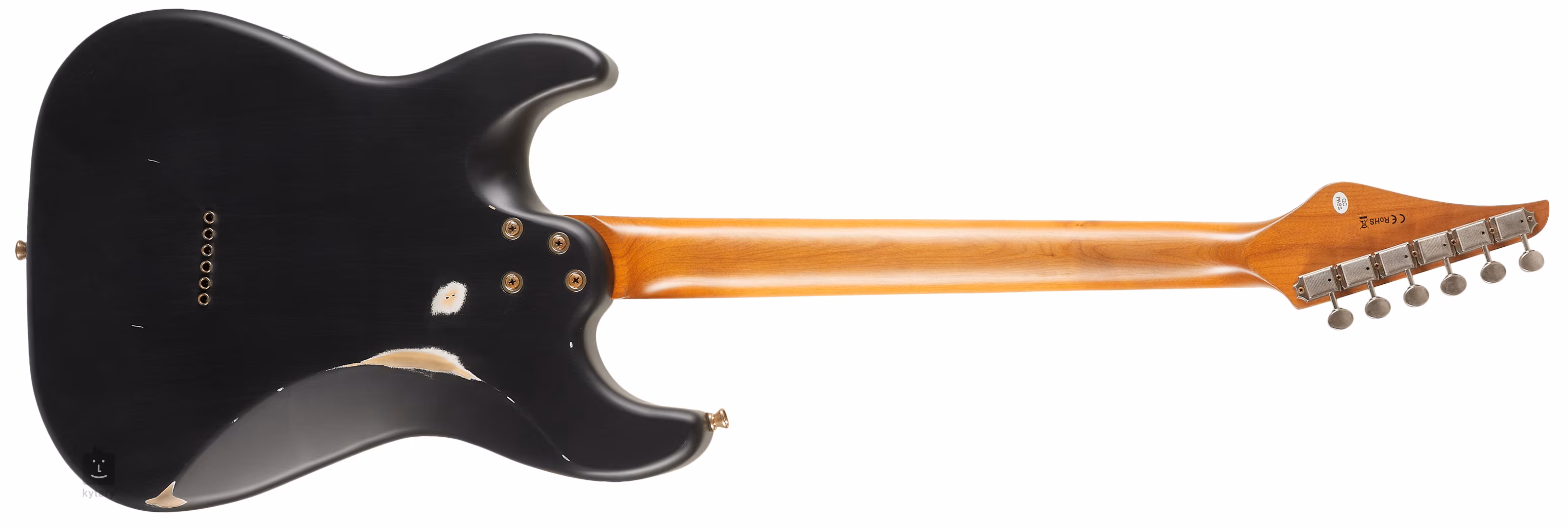 La guitare électrique JET JS-800 Relic BK est un modèle ST en finition Relic, c'est-à-dire un instrument présentant des éléments distinctifs de patine artificielle. Le corps en chaux de l'instrument est orné d'un certain nombre de rayures et d'abrasions artificielles de la finition Black Relic. Le manche et la touche en érable canadien boulonné ont été traités thermiquement avant l'assemblage, ce qui rend le bois plus stable et lui donne également l'aspect et l'atmosphère d'un manche et d'une touche qui ont été joués pendant des années, ce qui correspond aux spécifications générales.