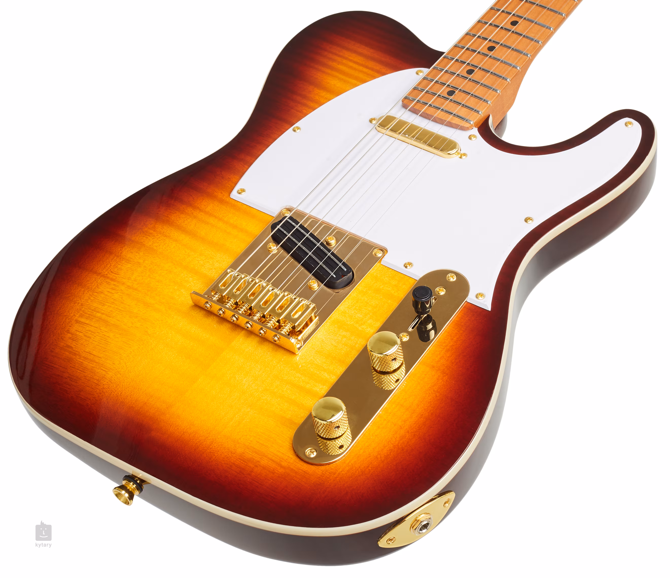 Le corps en acajou de la guitare est orné d'un placage spectaculaire en érable flammé et d'une finition Brown Sunburst. Le manche et la touche en érable canadien vissés ont été traités thermiquement avant l'assemblage, ce qui rend le bois plus stable tout en lui donnant l'aspect et l'atmosphère d'un manche et d'une touche qui ont été joués pendant des années.