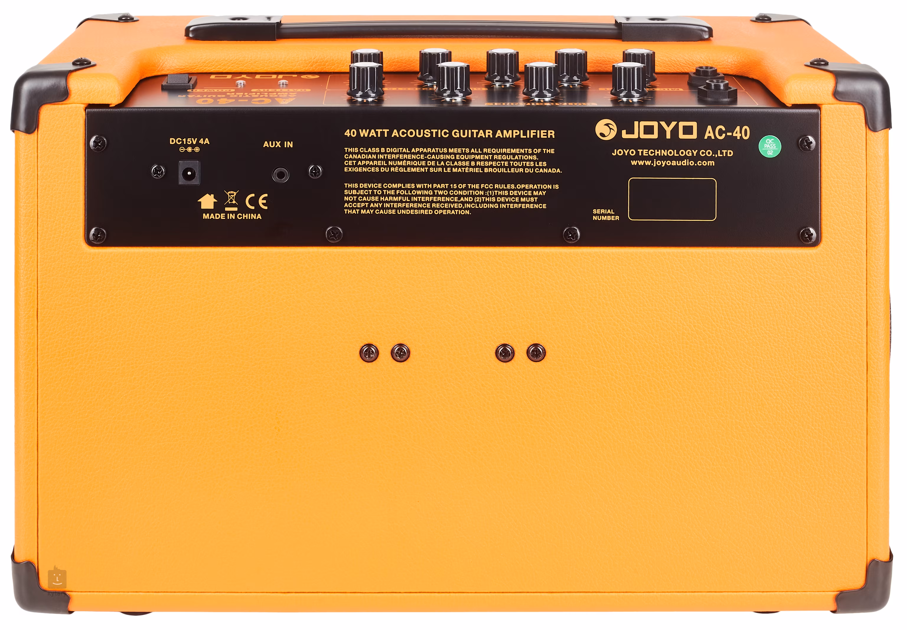 L'édition limitée de la série AC-40 Orange propose les combos acoustiques a deux canaux de Joyo avec un revetement en tolex orange, un tissu translucide en façade de couleur blé et un emboîtement (36 mm) pour faciliter le montage du combo sur un pied d'enceinte. Avec une puissance de quarante watts et une batterie rechargeable intégrée offrant une autonomie de trois heures sur une seule charge, le AC-40 Orange est un tres bon choix pour tous les artistes de rue, mais il trouvera certainement sa place dans les petits clubs et les théâtres.