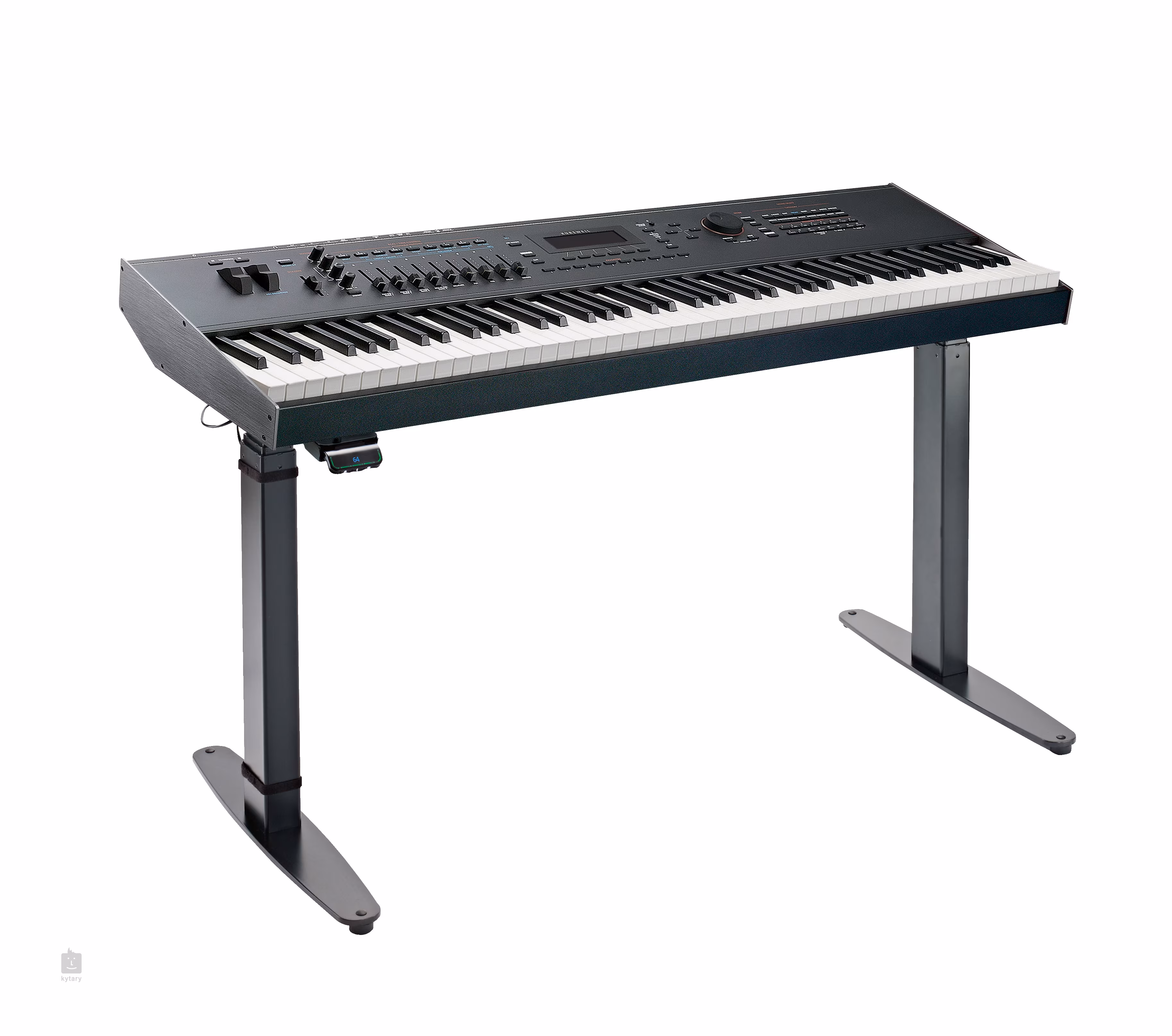 Un support de clavier qui s'ajuste tout seul en hauteur sans votre aide physique ? Oui, c'est exactement ce que peut faire le nouveau K&M Omega-E. Le design du stand est une copie de l'Omega 18810, les développeurs ont ajouté un moteur électrique, qui dispose d'un affichage clair et d'une mémoire intégrée permettant de régler jusqu'a quatre hauteurs différentes. Vous aurez toujours les clés a portée de main a la hauteur souhaitée, que vous soyez debout ou assis sur un tabouret. Vous pouvez également télécharger l'application "Desk Control" sur votre téléphone portable ou votre tablette et utiliser la technologie Bluetooth pour gérer les réglages de votre stand depuis le bar ou l'autre bout de la scene, par exemple. La construction métallique solide assure une stabilité maximale lors du jeu. Le support convient a tout type de clavier.