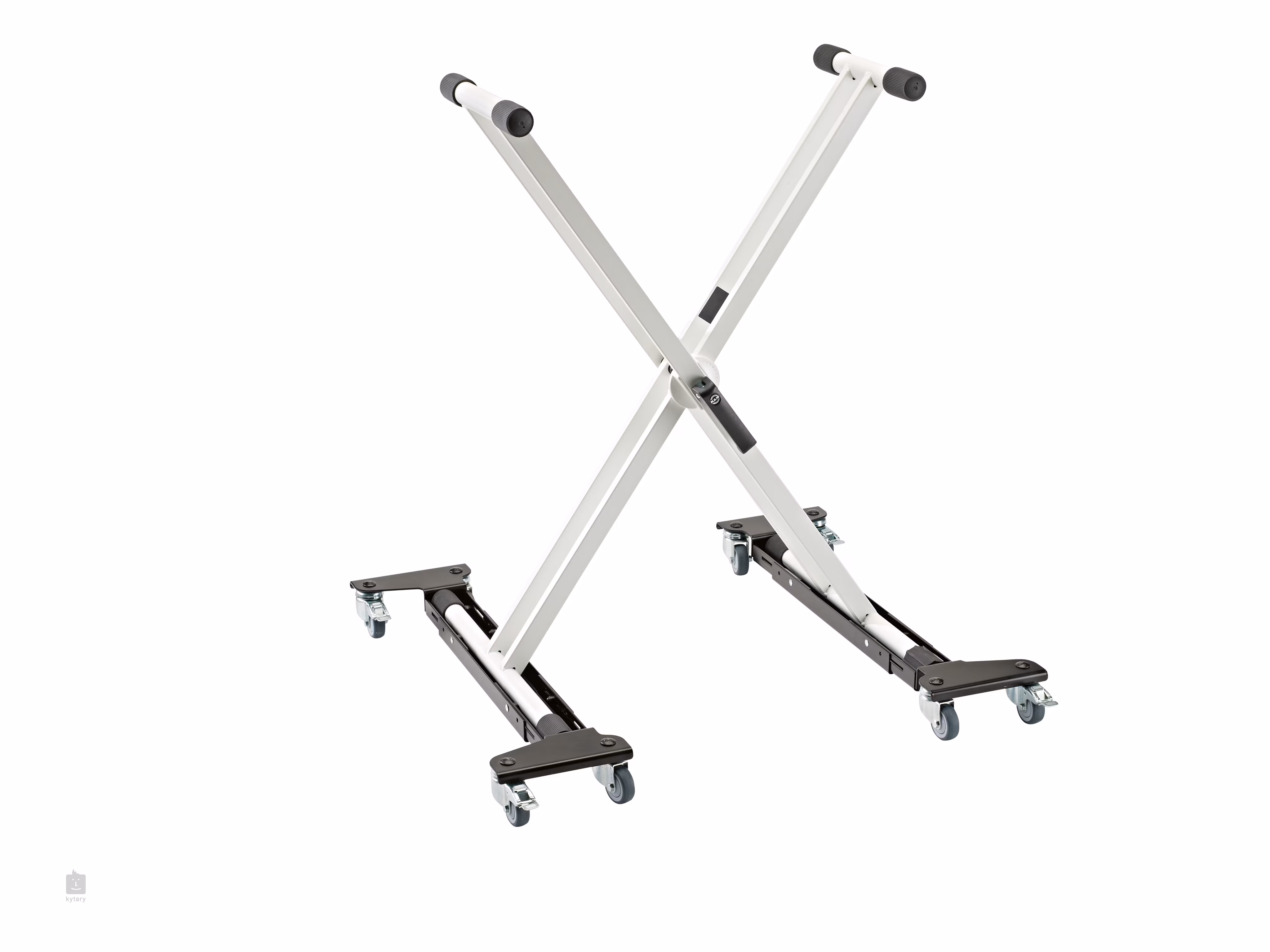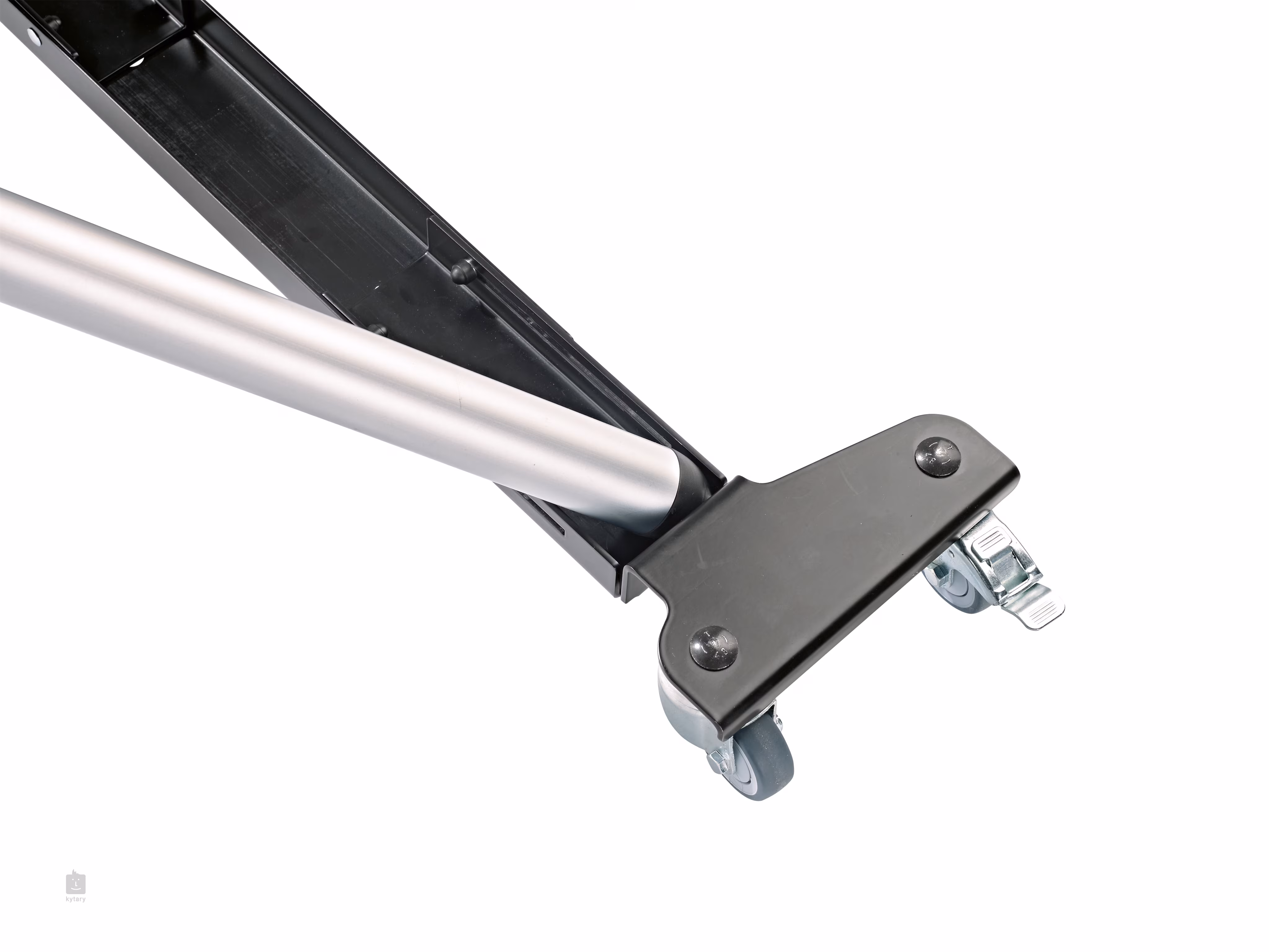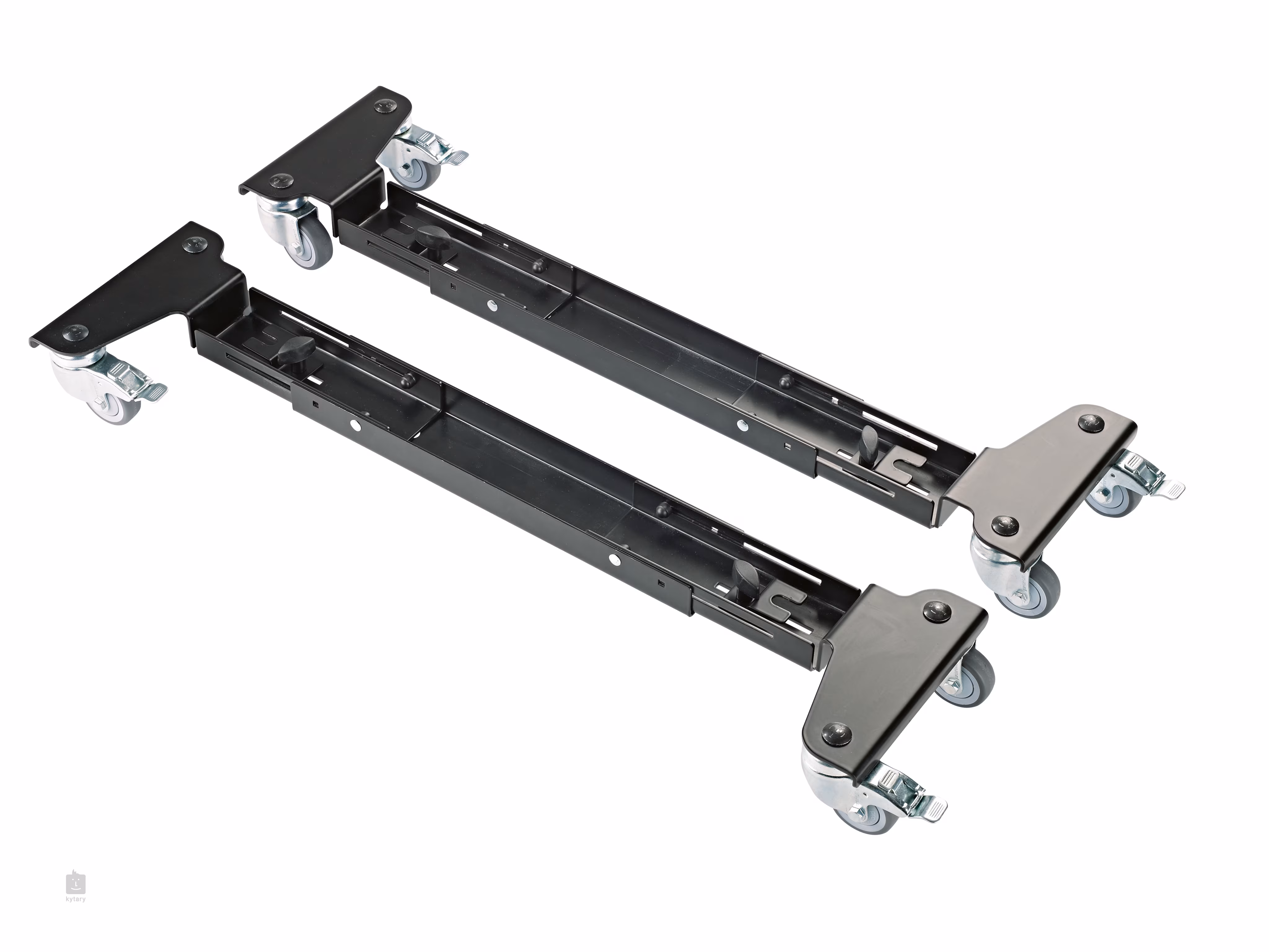 Un systeme de déplacement unique pour les supports de clavier qui simplifiera le transport de vos touches sur scene, en studio ou dans votre chambre. Pour une stabilité maximale, les rails sont équipés de quatre roulettes, dont deux avec un systeme de freinage. Les rails peuvent etre réglés de 50 a 80 cm, ce qui permet de les adapter a presque tous les supports de clavier disponibles sur le marché. La construction robuste est en métal, a l'intérieur des rails se trouvent des supports pour fixer les pieds du support.