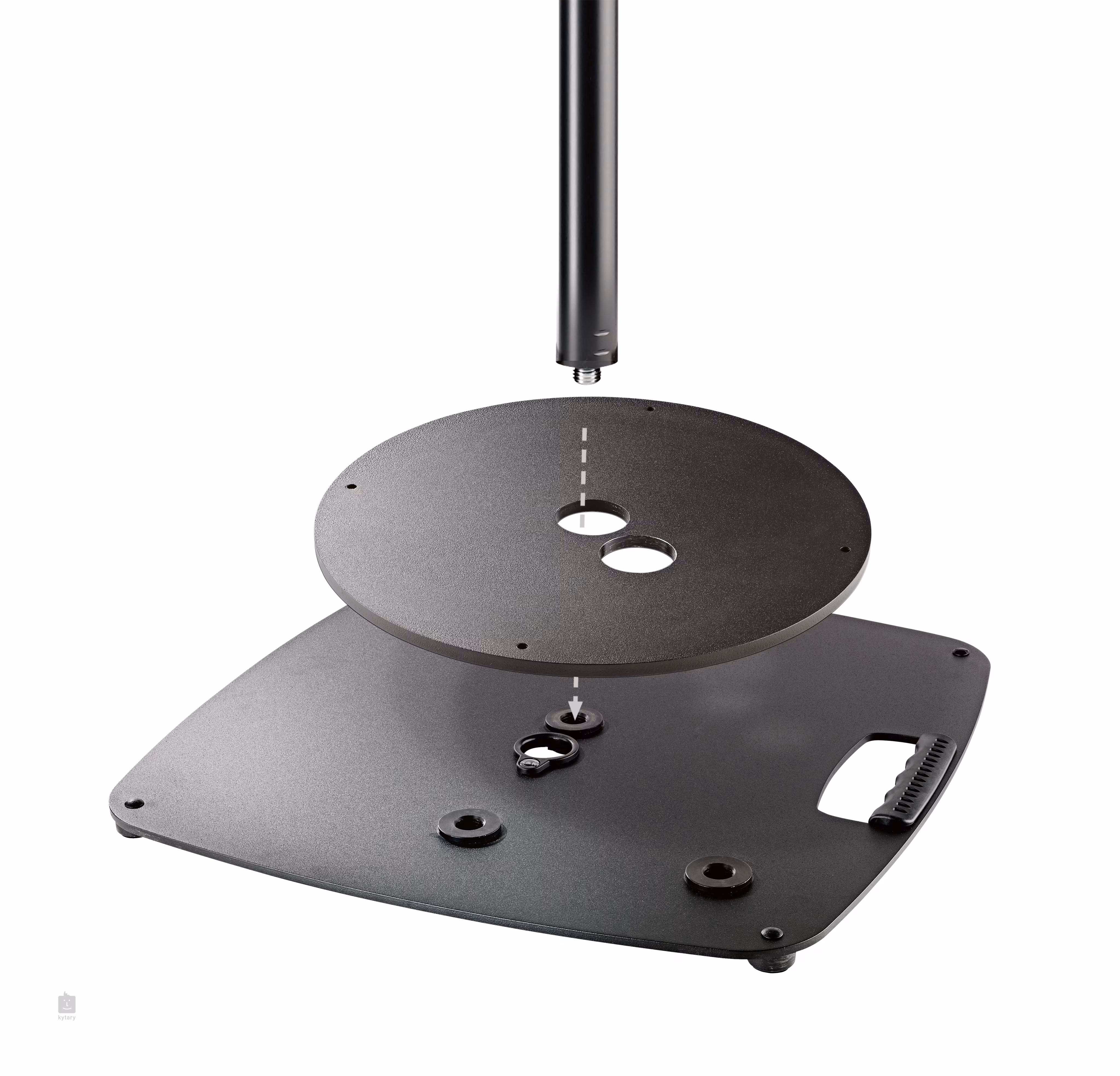 Le poids est fabriqué en acier durable et comprend deux trous de 43,5 mm de diametre pour l'installation sur la barre d'écartement du pied de l'enceinte.