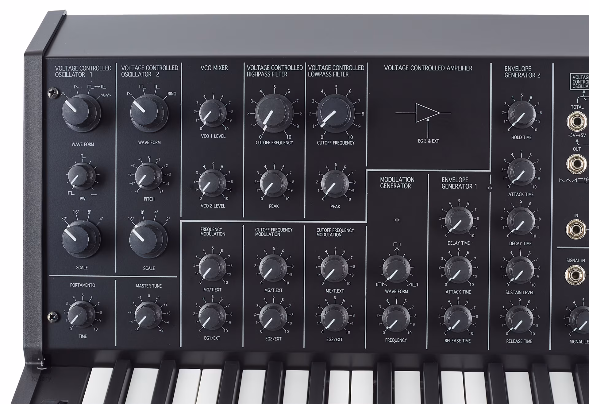 Un synthétiseur analogique reproduisant fidelement les fonctions classiques de 1978.
