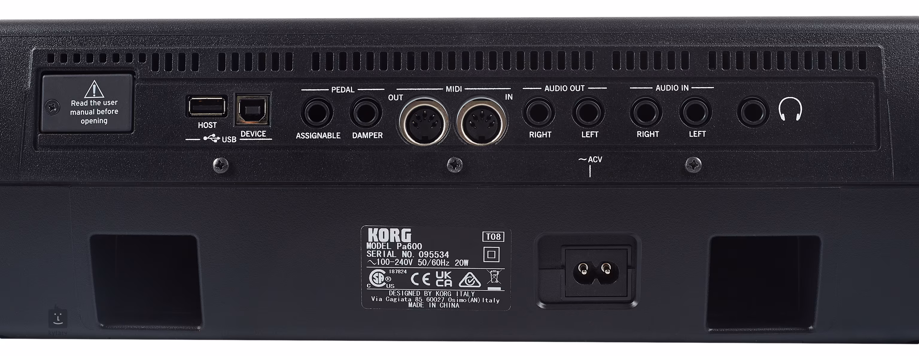 Caractéristiques du Pa600 : - Le générateur de son RX (Real eXperience) amélioré et le DNC (Defined Nuance Control) offrent un meilleur son, plus réaliste et plus vivant. - Une grande mémoire interne de sons PCM d'usine et jusqu'à 96 Mo de données PCM utilisateur offrent de l'espace supplémentaire pour les sons de la plus haute qualité. - Deux commutateurs programmables et un joystick à quatre directions permettent un contrôle total à différents niveaux de contrôle de la nuance définie (DNC). - Grand écran couleur TFT TouchViewTM rétro-éclairé avec une résolution de 800x480. - Panneau clair et interface graphique intuitive avec une nouvelle fonction de recherche pour faciliter les recherches. Nouvelles fonctions pour travailler avec le copier/coller, renommer et supprimer des données. - Plus de 360 styles prêts à l'emploi, chacun contenant trois versions Intro/Ending, quatre Variations et quatre variations Fill In + Break, plus 10 banques Favorite et 3 banques User pour stocker les styles favoris modifiés ou sauvegardés. Mode guitare 2 redessiné pour des parties de guitare encore plus réalistes et des pads synchronisés. - Fonction Chord Sequencer pour enregistrer des progressions d'accords à la volée. - Suite GM améliorée pour les fichiers Midi standard, lecteur MP3 avec fonctions de transposition et de changement de tempo, compatible avec les formats de texte utilisés, notamment Graphic (+G), Text Viewer, Marker et Score. - 4 effets stéréo Master (125 algorithmes FX). - Base de données SongBook entièrement programmable basée sur les Styles, SMF, Karaoke, MP3 avec rappel instantané de n'importe quel paramètre de morceau.