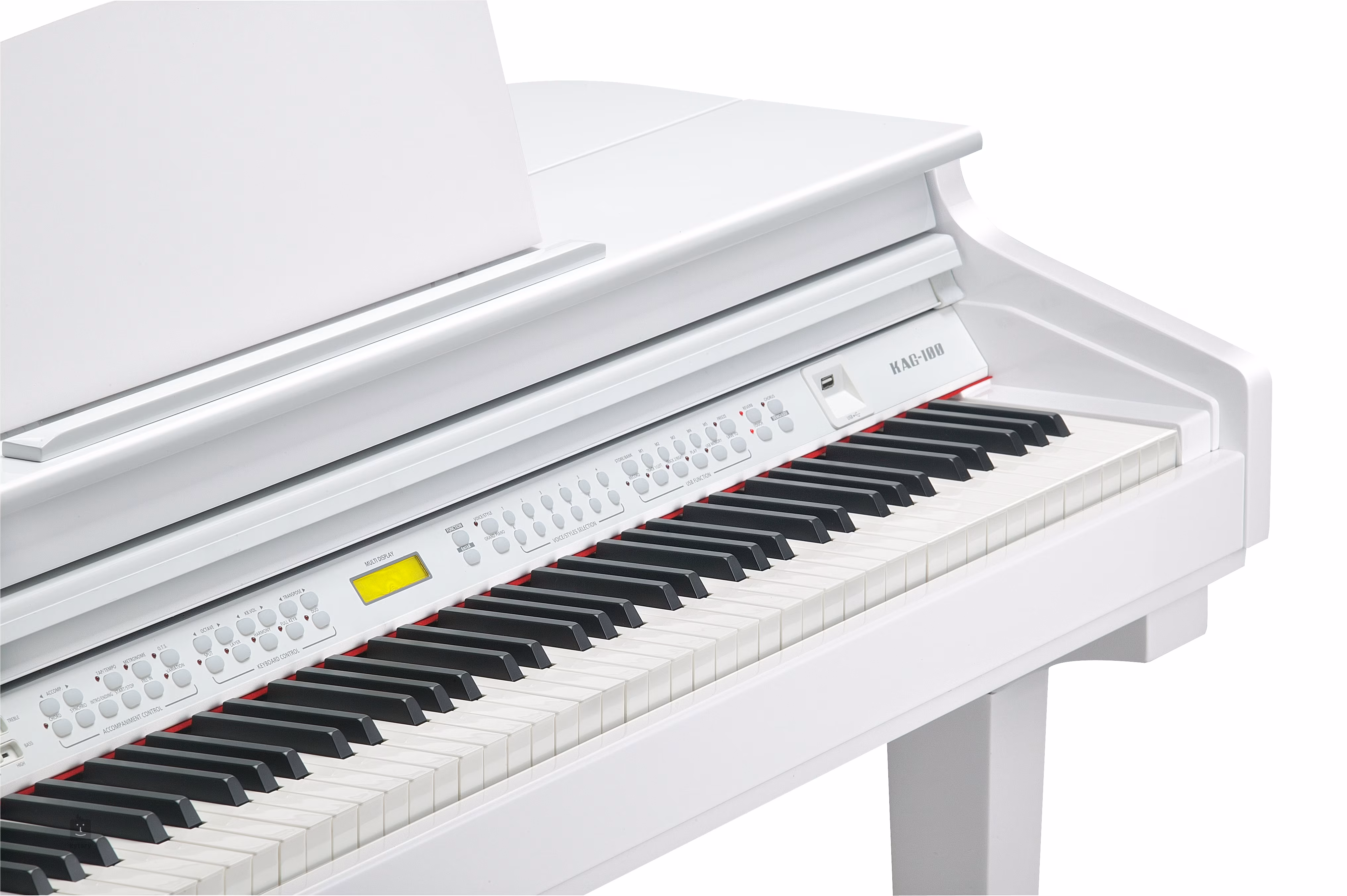 Le KAG100 vous offre 88 touches avec un réglage de la plage dynamique à trois niveaux. Ces caractéristiques vous donneront l'impression de jouer sur un véritable piano à queue de concert. Des pianos acoustiques aux claviers numériques en passant par les guitares et les cordes, vous pouvez utiliser jusqu'à 200 instruments à la recherche du bon son. Le signal obtenu peut être enrichi d'effets tels que la réverbération et le chorus, et vous pouvez également vous accompagner avec l'une des 71 chansons de démonstration. Si vous jouez en soirée, vous apprécierez également les deux sorties casque situées sur le panneau avant des touches, qui vous permettront de vous entraîner à quatre mains avec un coéquipier en toute tranquillité. Le panneau arrière comprend une connectique flexible sous forme d'entrées ou de sorties RCA stéréo pour faciliter le branchement de lecteurs de musique et d'équipements de sonorisation. Le KAG100 allie un design traditionnel aux nouvelles technologies, suivant les nouvelles tendances et les besoins des utilisateurs qui ont fondamentalement changé avec l'avènement des appareils intelligents. L'instrument peut être acheté en deux couleurs pour s'harmoniser avec le décor de votre salon ou de votre salle de musique.