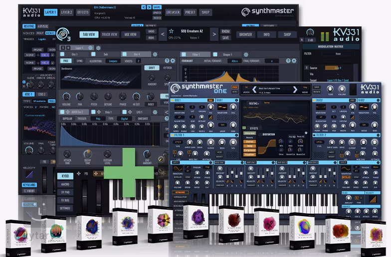 KV331 Audio SynthMaster Everything Bundle comprend 3 instruments virtuels et toutes les bibliothèques d'extension actuellement disponibles et à venir avec des presets de qualité supérieure.