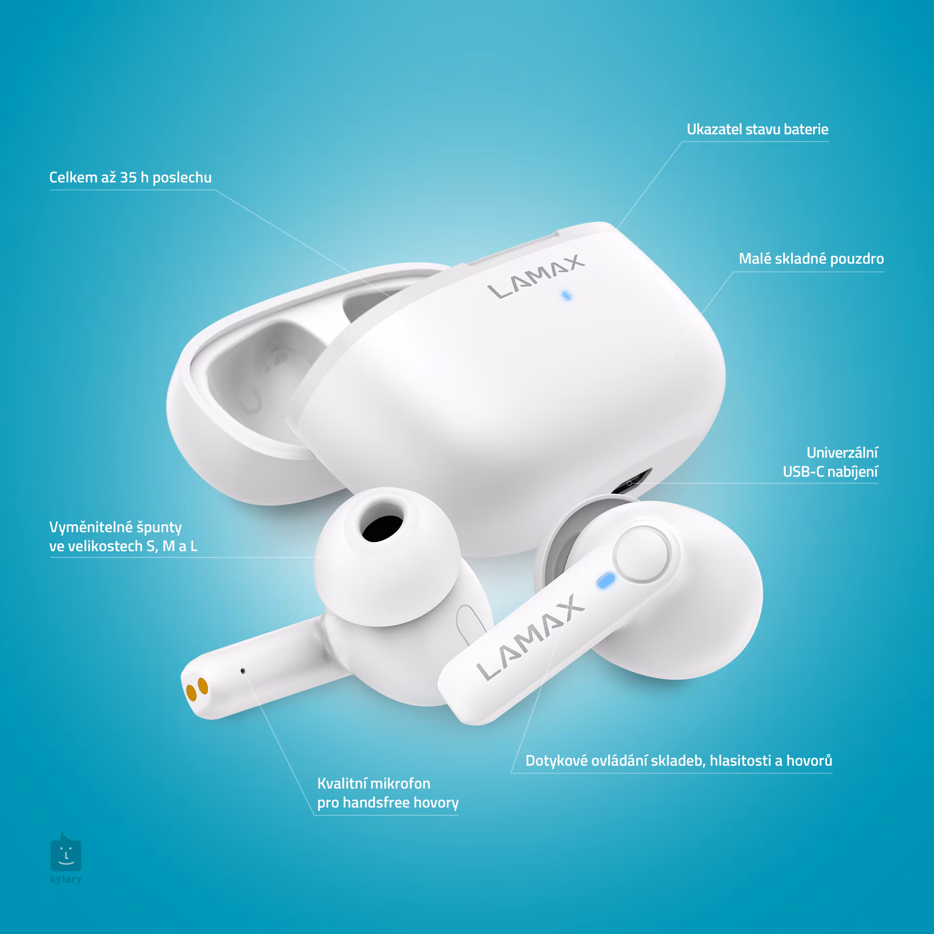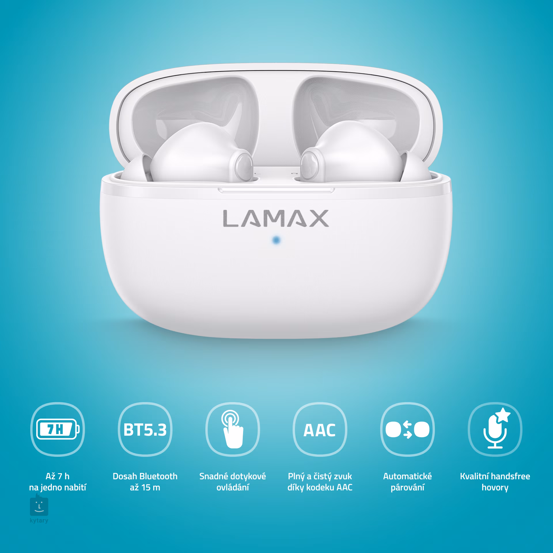Avec le Bluetooth 5.3 rapide et jusqu'à 7 heures d'autonomie, le casque intra-auriculaire sans fil LAMAX Clips1 Play peut faire face à la vie rapide d'aujourd'hui où vous avez simplement besoin de prendre des appels, de passer d'une liste de lecture à l'autre de vos artistes préférés, idéalement avec les mains libres et certainement pas de perdre du temps à attendre que le casque s'apparie avec votre téléphone.