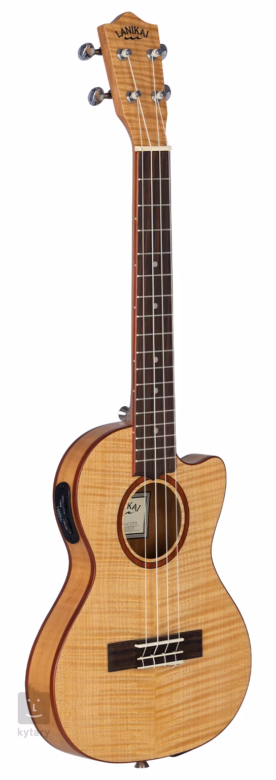 Le corps élégant et étroit de l'ukulélé ténor électroacoustique Lanikai Flame Maple Series est fabriqué en érable stratifié dont le grain caractéristique confère à l'instrument un aspect luxueux. Le manche en okoumé est surmonté d'une touche en bois de figuier munie de dix-sept frettes. Le profil agréable du manche, l'élargissement de la frette zéro et la découpe inférieure du corps offrent un confort de jeu optimal.