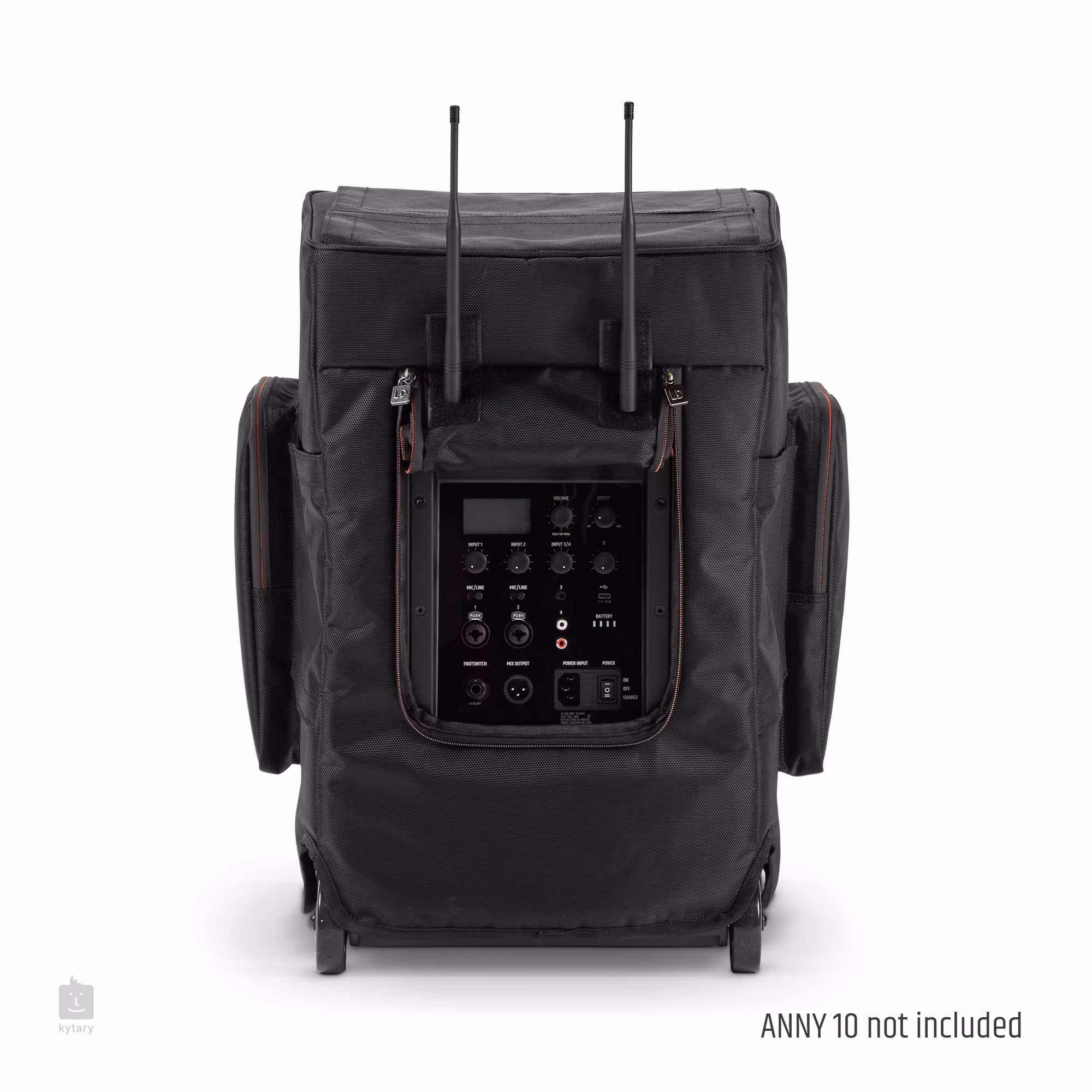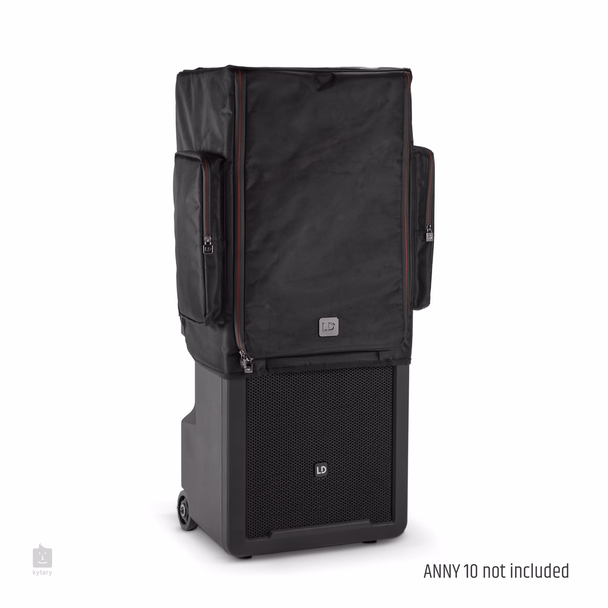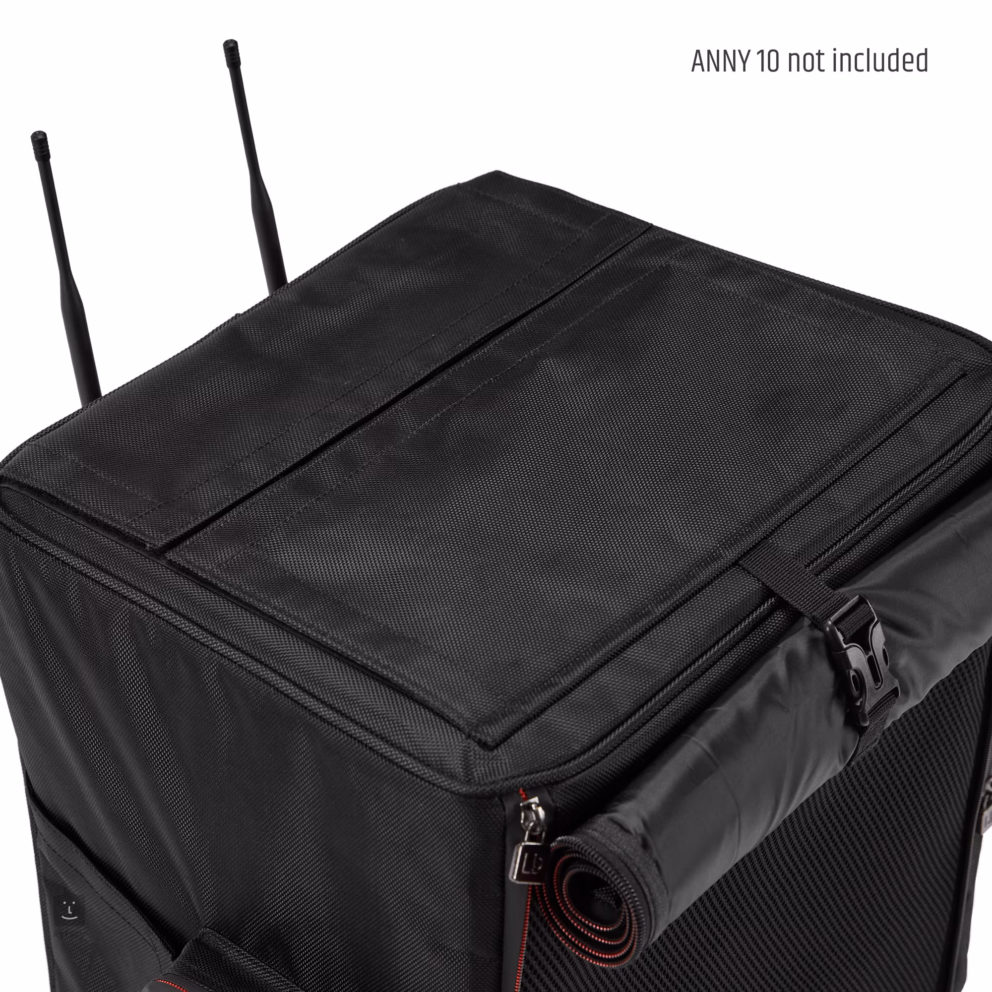 LeLD Systems ANNY 10 PC est un étui de protection pour l'enceinte ANNY® 10 qui offre une protection étanche grâce à un nylon imperméable. La housse est dotée d'une face avant enroulable, ce qui permet d'utiliser l'enceinte avec le protecteur partiellement déployé. Bien sûr, il y a des ouvertures pour les poignées et l'accès au mélangeur interne, ainsi que des poches externes pour les accessoires.