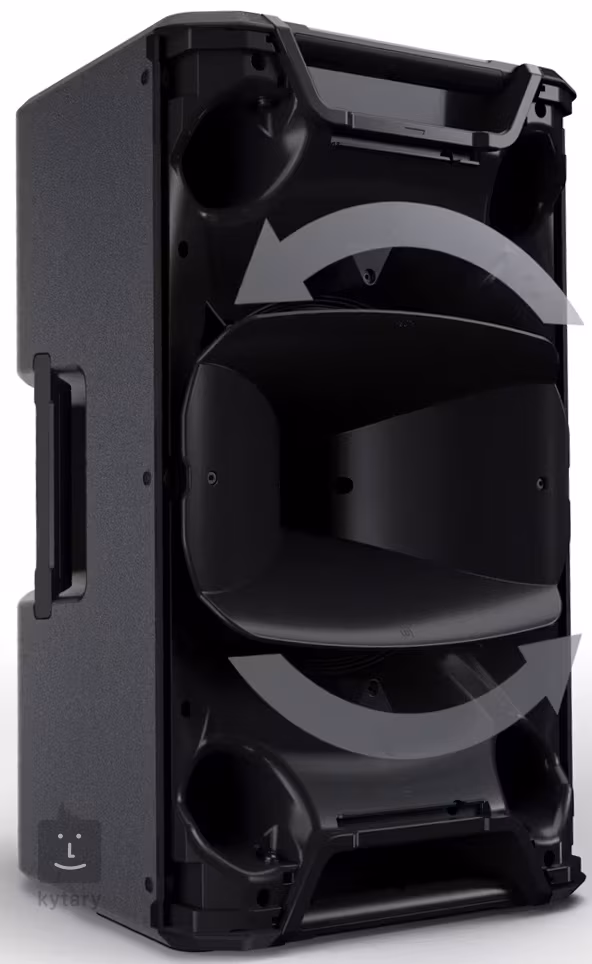 L'acheminement précis du son est assuré par un conduit rotatif pour le woofer et le tweeter, qui permet de cibler avec précision les ondes sonores dans les fréquences moyennes (autour de 600 Hz), ce qui offre un avantage décisif dans les environnements acoustiques difficiles. Le haut-parleur offre un large spectre de fréquences de 53 à 20 000 Hz, est équipé d'un puissant amplificateur de classe D et délivre jusqu'à 1000 watts RMS (2000 watts crête) et une pression sonore maximale de 133 dB SPL, ce qui offre une grande marge pour un son puissant et non déformé, même à des volumes élevés. Le DSP SysCore de pointe avec filtres FIR/IIR et limiteurs avancés garantit un son clair, sans distorsion, avec une intelligibilité et une dynamique élevées.