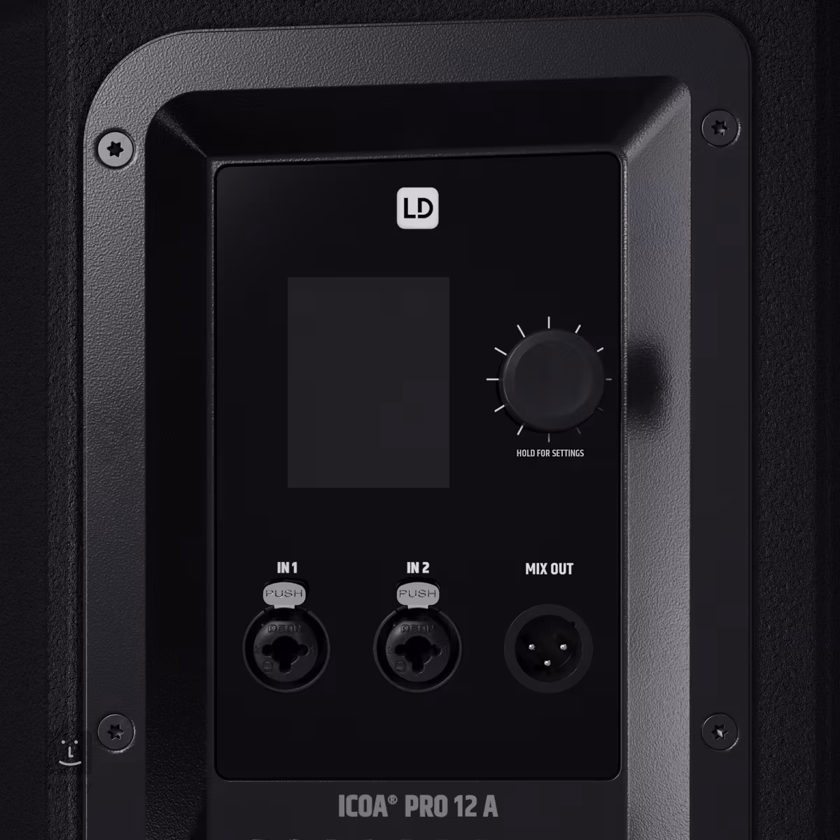 Pour une flexibilité de connexion maximale, l'enceinte est équipée de deux entrées combinées ligne/micro et d'une sortie XLR pour une interconnexion facile. Il existe quatre préréglages pour différentes applications audio (y compris un mode de monitoring à faible latence), une fonction de retard et des égaliseurs paramétriques à quatre bandes pour les canaux d'entrée et master, qui permettent des ajustements sonores précis. Les commandes intuitives sont fournies par un écran couleur avec une seule commande rotative et l'application gratuite ICOA PRO, qui vous permet d'ajuster rapidement et sans fil tous les paramètres et de coupler plusieurs enceintes. La création d'une configuration stéréo avec jusqu'à deux satellites et quatre caissons de basses, avec l'option de streaming musical direct via Bluetooth 5.1, est une question de secondes dans l'application.