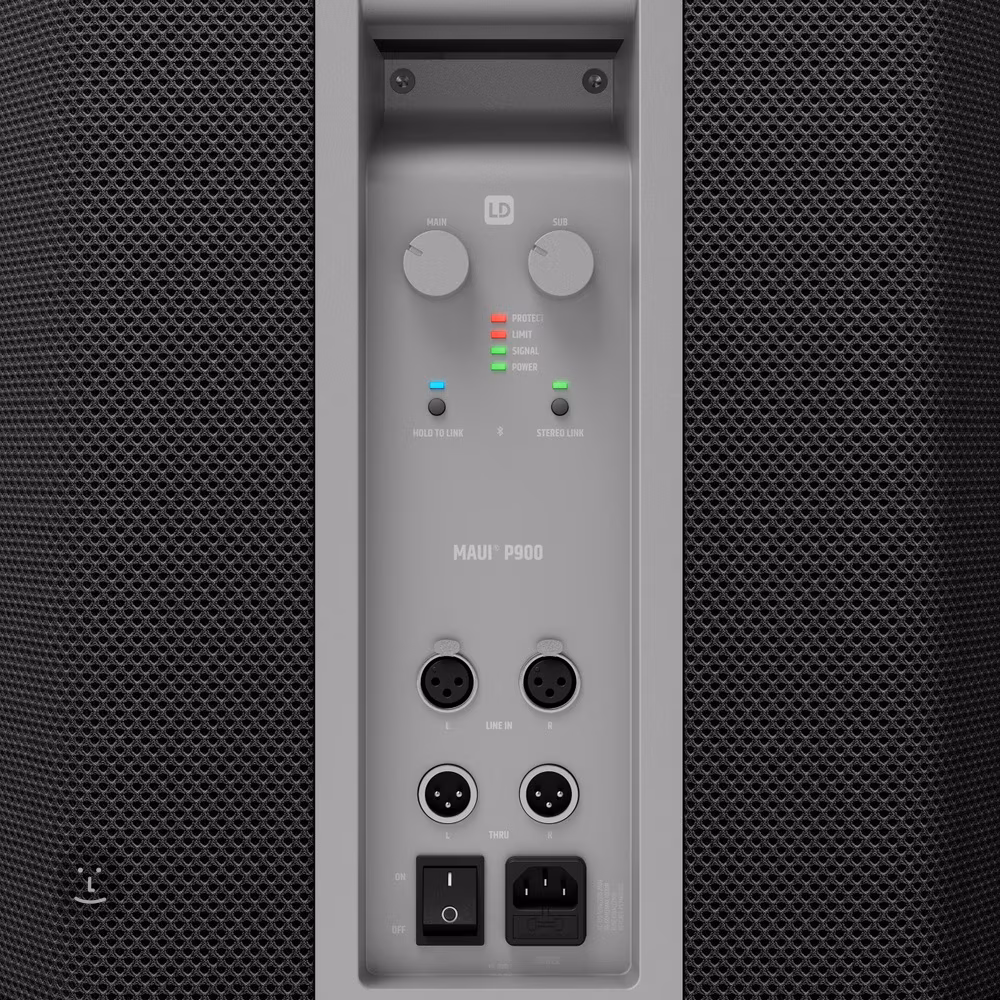 Le caisson de basses, associé à deux satellites et à trois amplificateurs de classe D, offre une puissance maximale de 1 400 W. Le panneau principal comporte des entrées XLR stéréo et une commande de volume pour le caisson de basses ou la commande Main Volume pour le volume général. Pour se synchroniser avec Bluetooth, il suffit de maintenir le bouton "Hold To Link" et vous commencerez immédiatement à diffuser votre musique préférée. La forme biseautée du caisson de basse permet de disperser les basses et moyennes fréquences dans toutes les directions. Vous pouvez ensuite utiliser les sorties XLR stéréo pour connecter une autre sonorisation, et si vous disposez d'une autre installation MAUI P900B, vous pouvez les connecter entièrement sans fil pour obtenir un son stéréo brillant qui peut vraiment supporter les grands concerts en plein air. La connexion rapide et pratique entre les deux satellites et le subwoofer est rendue possible par un système de colonne sans aucun câble. Le MAUI P900B convient donc aux installations mobiles et peut facilement sonoriser un mariage, un concert en plein air, une conférence, un centre de fitness ou un concert sur un bateau.