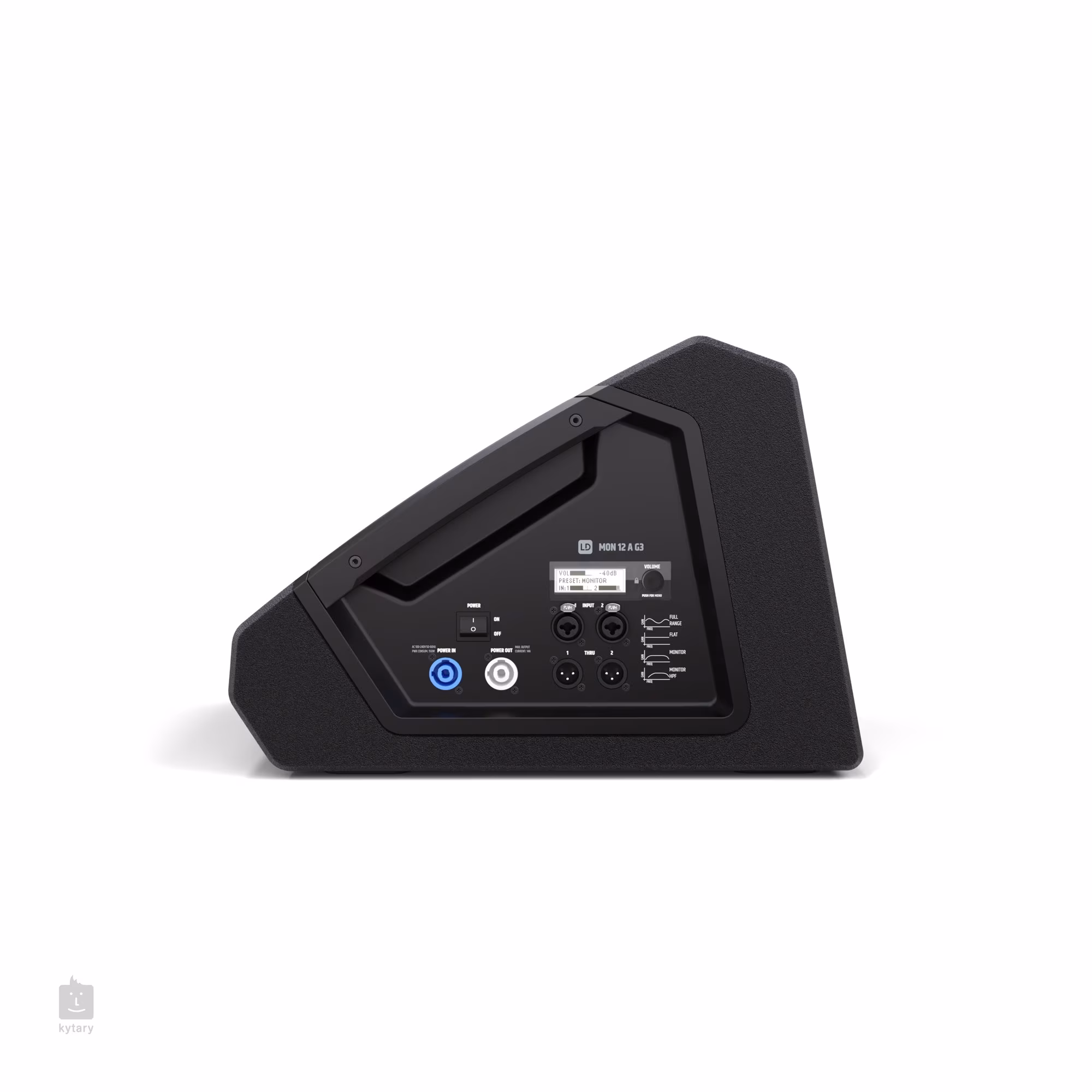 Le LD Systems MON 12 A G3 est un haut-parleur de scène actif à deux bandes avec une conception coaxiale, une puissance de sortie maximale de 1200 W (300 W RMS), un amplificateur de classe D, une réponse en fréquence (-10dB : 55 Hz - 20 kHz, -3dB : 68 Hz - 18 kHz), une inclinaison du moniteur de 33 degrés, une projection spatiale du son de 50 x 90 degrés, un égaliseur à trois bandes, un filtre coupe-bande et une fonction de retard. La configuration coaxiale réduit la sensibilité aux effets de larsen. Le MON 12 A G3 peut également être monté sur des pieds d'enceinte standard (emboîtement de 35 mm) - il peut donc servir d'enceinte de scène ou d'enceinte FOH sur pied.