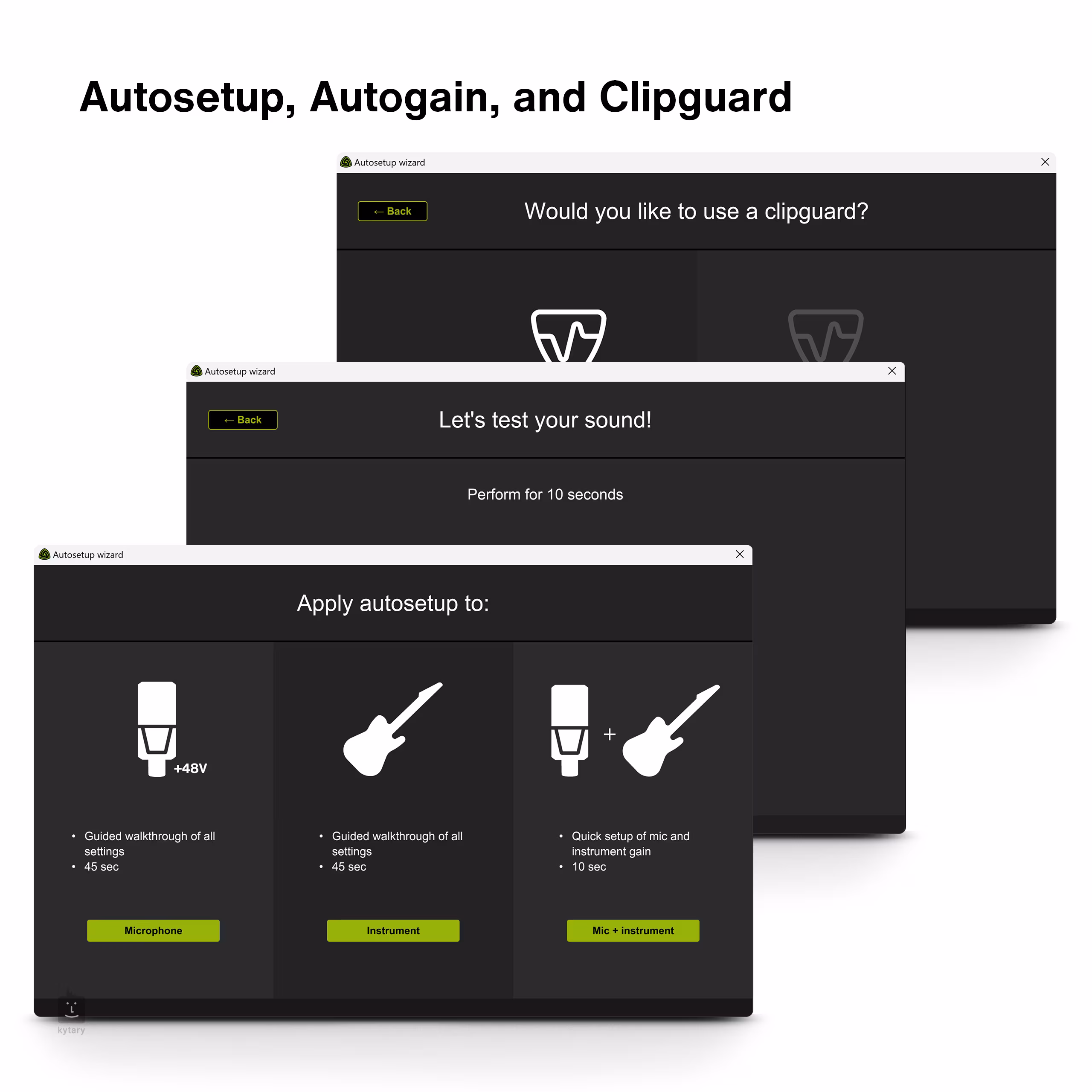 Caractéristiques et fonctions clés - Interface audio USB-C pour la production musicale, les podcasts et la diffusion en continu. - Interface utilisateur intuitive à écran tactile - Réglage automatique des paramètres optimaux - Puissant préamplificateur de microphone avec un gain de 72 dB et une plage dynamique de 118 dB - Entrée instrument Hi-Z avec circuit d'annulation du bruit et plage dynamique de 121 dB - Trois sons de préamplificateur - propre, chaud et vif - La technologie Clipguard protège votre signal de la surcharge - compresseur et débruiteur pour un son professionnel - sortie casque zéro ohm et mode casque haute impédance - canal de bouclage pour capturer l'audio de votre ordinateur - Unité DSP sans latence pour les effets et le monitoring - Console virtuelle CONTROL CENTER pour un contrôle numérique complet et plus encore...