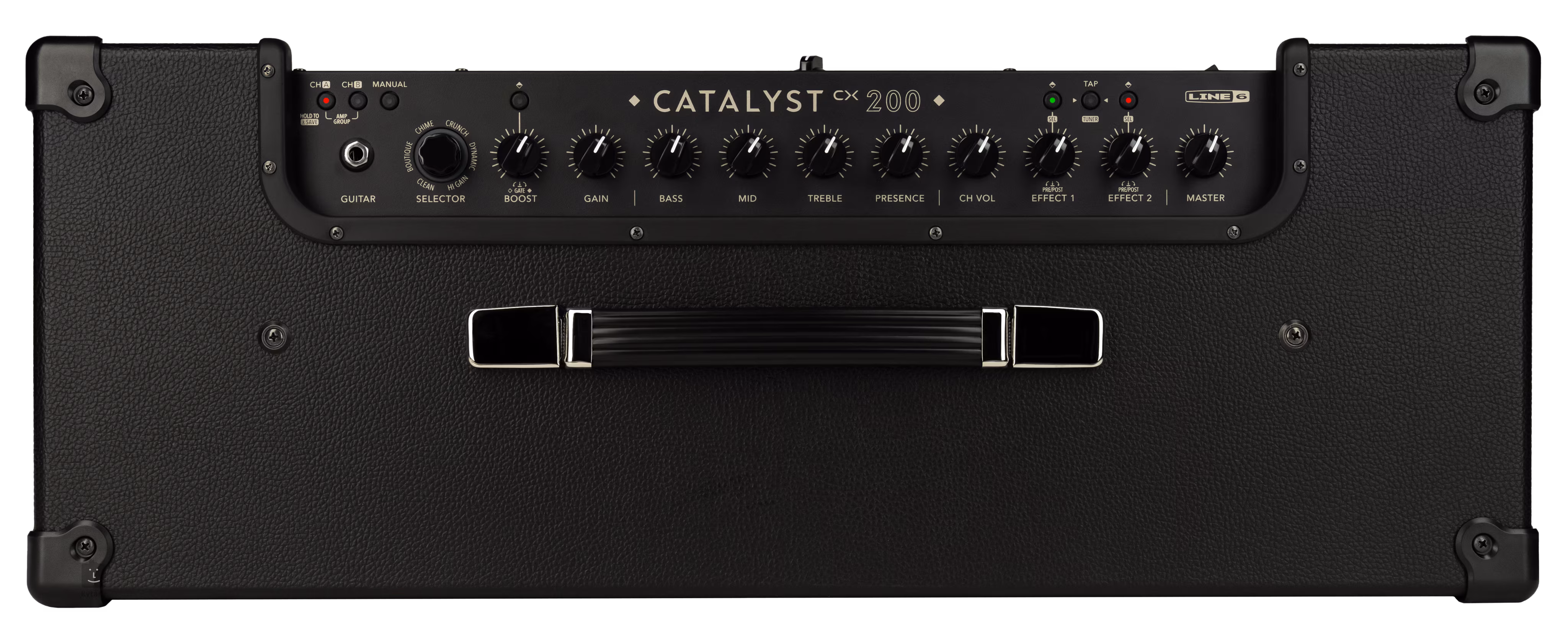 La série Catalyst CX de Line 6 propose trois combos de modélisation de guitare à deux canaux qui offrent les mêmes sensations que les guitares traditionnelles et une plus grande polyvalence. Ces combos offrent une puissance de 200 W, 100 W et 60 W, douze réglages de guitare tirés des guitares et processeurs d'effets Helix (des sons cristallins aux sons modernes à gain élevé, chaque réglage est accompagné d'un Custom Boost en option), vingt-quatre effets HX répartis en quatre catégories (réverbération, délai, modulation, pitch/filtre), un système d'échantillonnage et un système d'enregistrement de la voix, Delay, Modulation, Pitch/Filter), fonction Tap Tempo, accordeur intégré, alimentation commutable incluant une fonction Mute pour l'enregistrement/la lecture au casque (Mute, ½W, 50% de la puissance, 100% de la puissance) et commandes standard (égaliseur trois bandes, contrôle du volume général, volume du canal, gain, boost et effets intégrés).