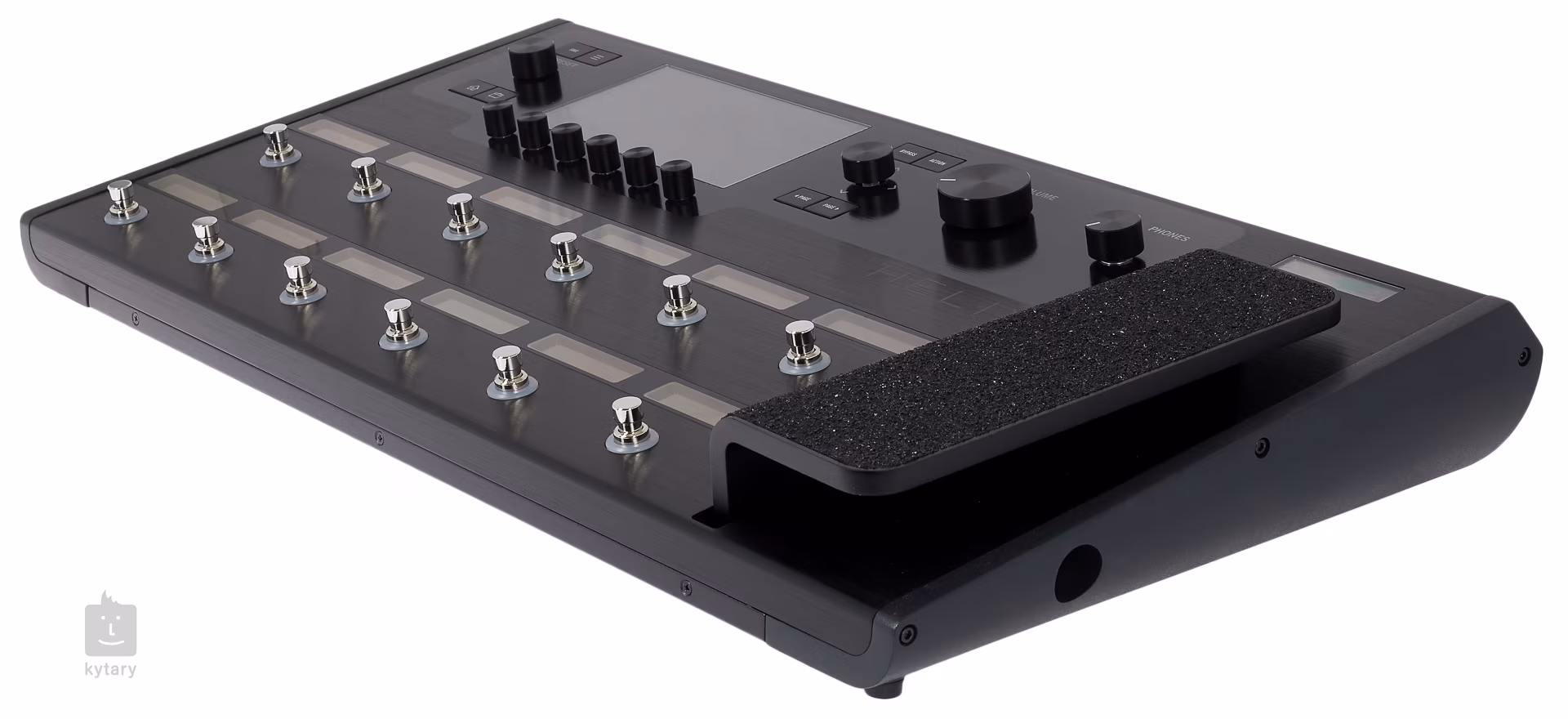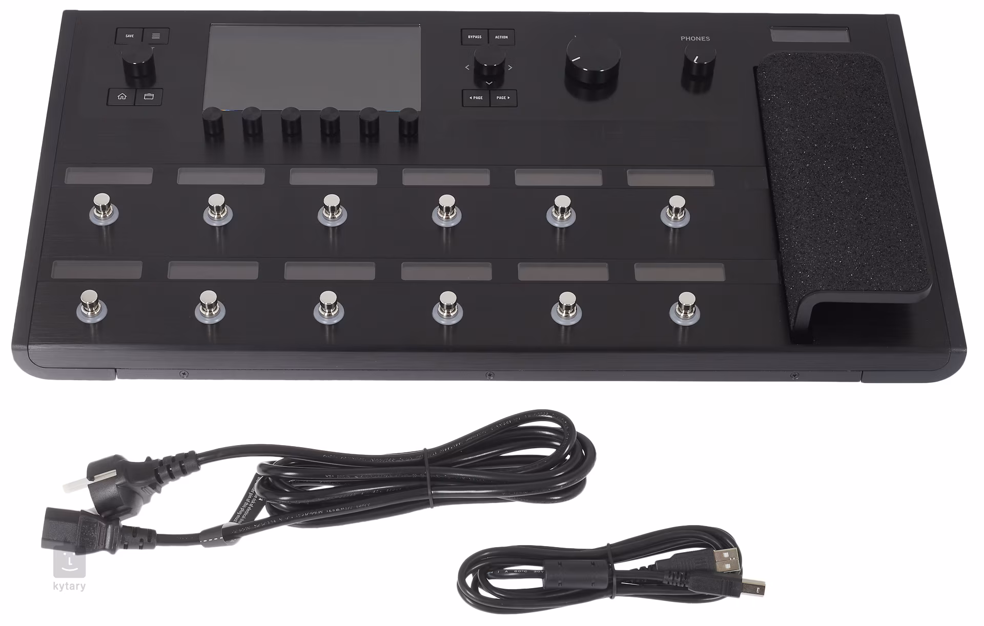 • Réglages 12x Footswitch, 1x Expression Pedal, 6x Parameter Knob, Joystick, Volume, Phones Output, Tap/Tuner, 9x control button