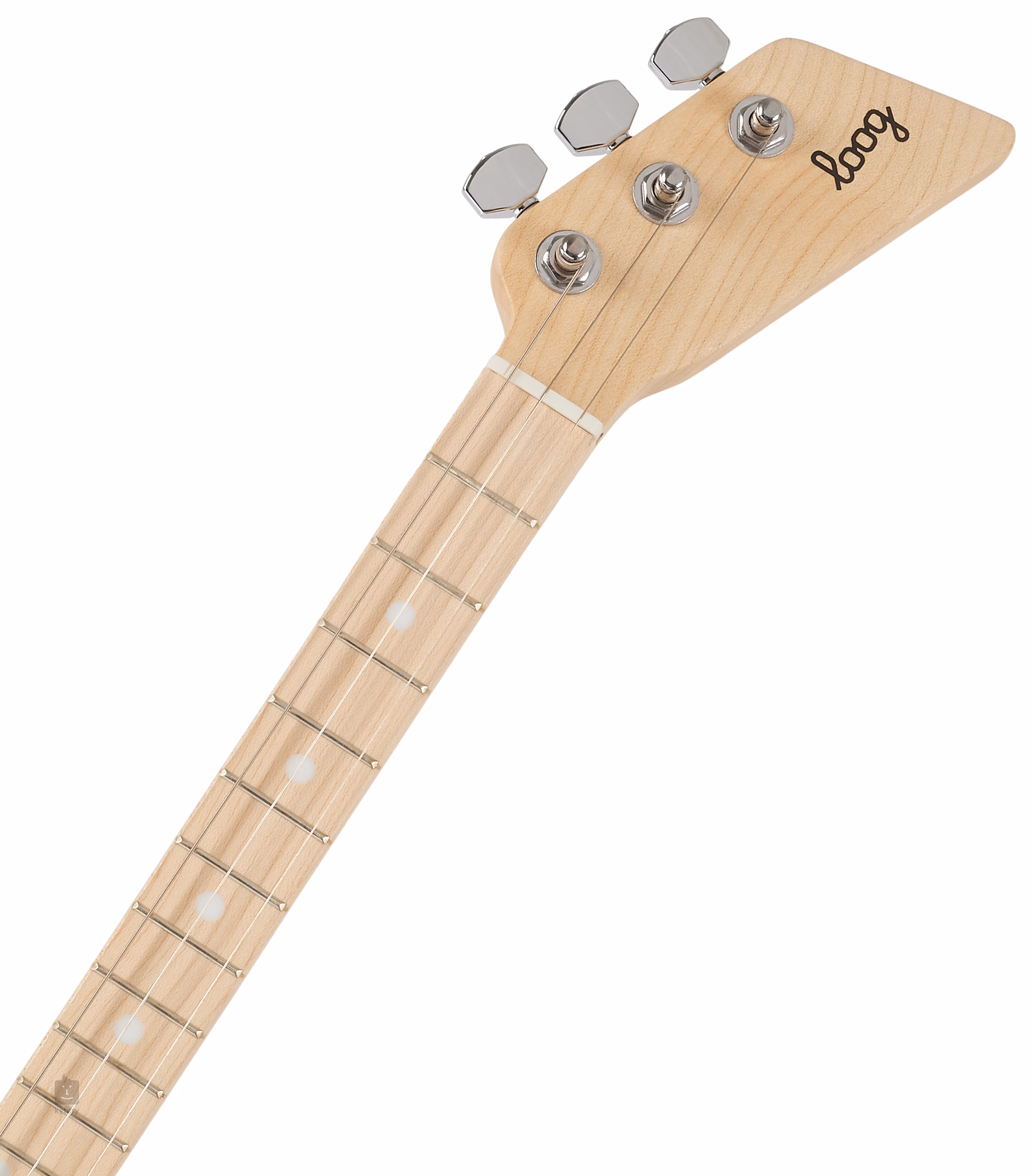La Loog Mini Electric Green est une guitare électrique à trois cordes pour enfants dont la taille est comparable à celle d'un ukulélé. C'est un instrument doté d'un amplificateur intégré, d'un haut-parleur et d'un accordage de guitare standard (G-H-E) qui convient aux enfants de trois ans et plus. Grâce à la Loog Mini Electric, vos petits rockers et rockeuses seront préparés à la transition ultérieure vers les guitares et basses électriques "adultes".