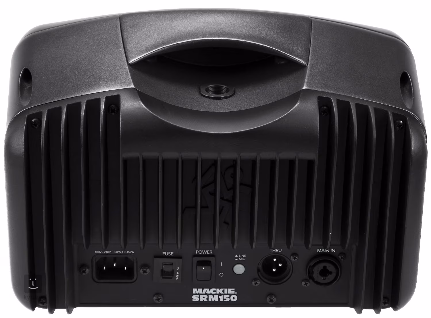 Le SRM150 est une enceinte mobile qui comprend un mélangeur à 3 canaux offrant un égaliseur à 3 bandes sur chaque canal. Deux canaux contiennent également des préamplificateurs de microphones de haute qualité et une alimentation fantôme. Il y a également une entrée pour instrument qui élimine le besoin d'une boîte de direct. Sur le troisième canal, il y a une entrée stéréo pour les appareils externes tels que les lecteurs mp3 ou CD, une entrée ligne pour ajouter une autre entrée et un connecteur XLR Thru pour connecter un autre boîtier ou envoyer le signal directement à la sonorisation.