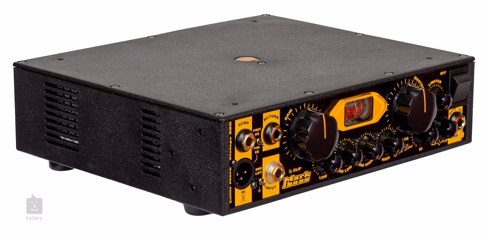 Le Markbass Little Mark Vintage 58R est un amplificateur de basse haut de gamme qui offre une multitude d'options de réglage de la tonalité et un design moderne. Toutes les commandes et les connecteurs sont situés sur le panneau avant, ce qui facilite l'accès à toutes les fonctions, tandis que seules les sorties haut-parleurs et l'alimentation restent à l'arrière. Son design compact et léger le rend facilement transportable et offre une excellente combinaison de sonorités modernes et vintage.