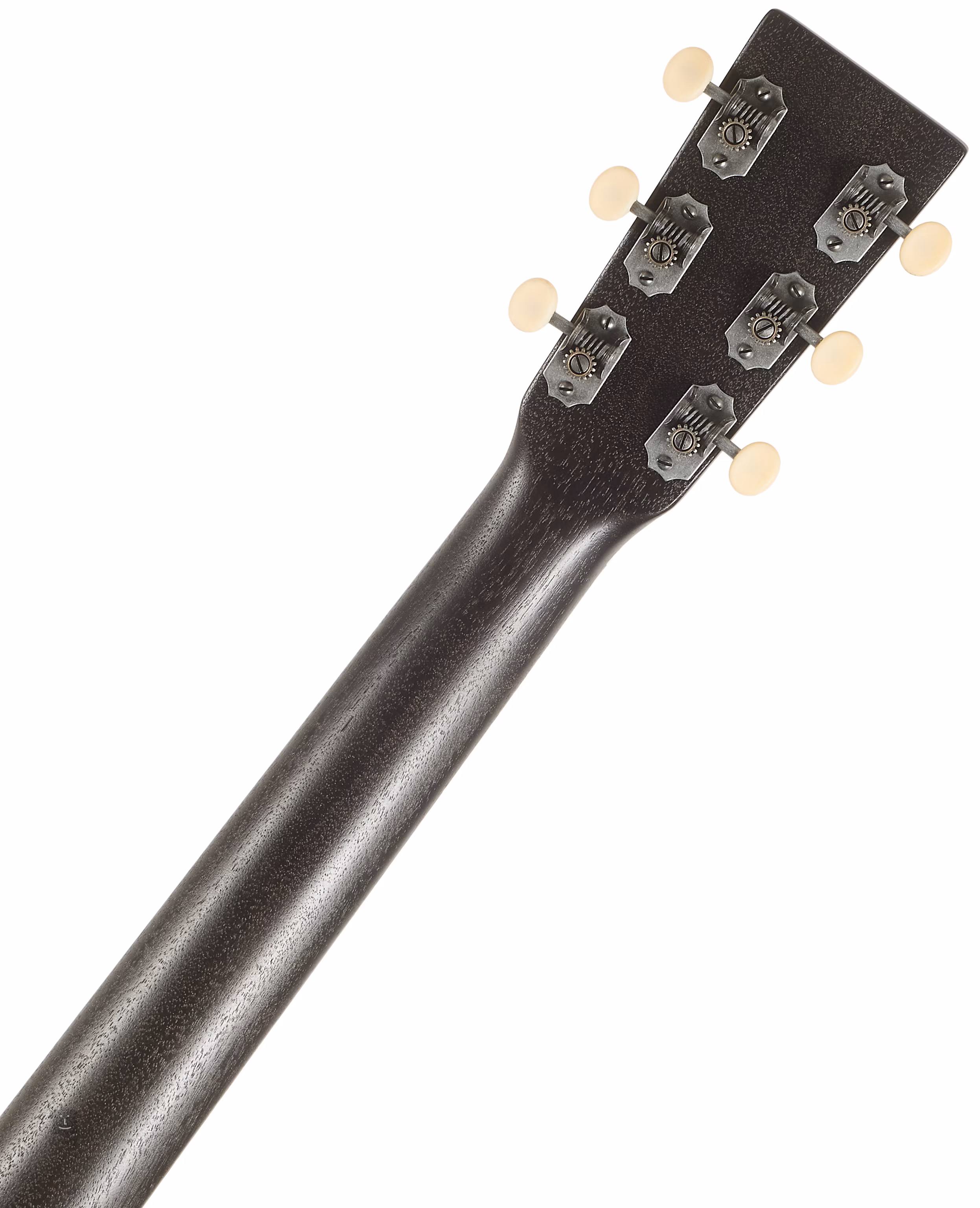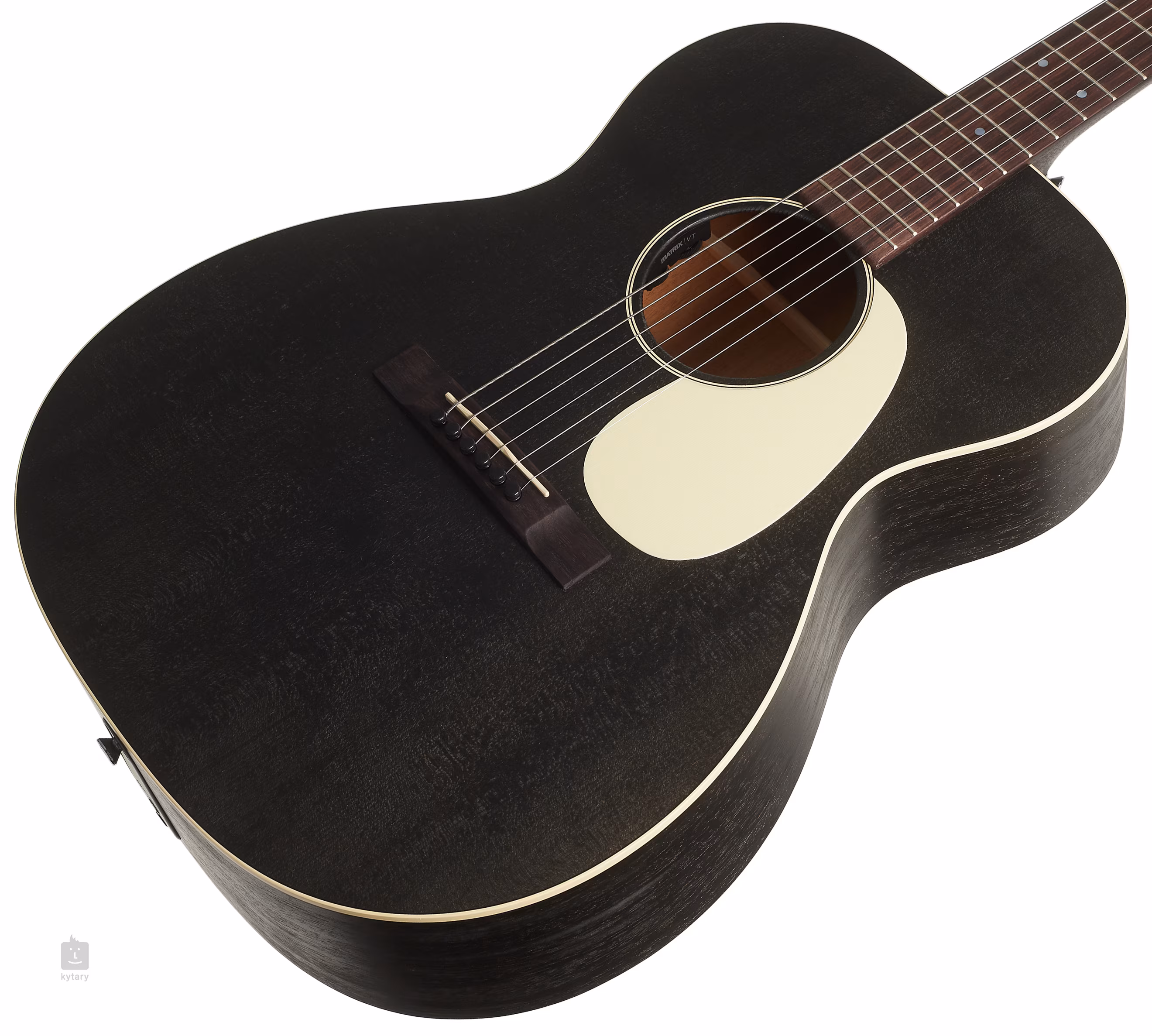 Le corps plus petit de la 000-17E Black Smoke "triplet" et le menstruum plus court garantissent une bonne jouabilité et un bon confort de jeu, même pour les joueurs de petite taille ou de petite corpulence. La combinaison d'une table d'harmonie en épicéa et d'un dos et d'éclisses en acajou confère à la guitare une sonorité riche et claire, avec un équilibre entre clarté et chaleur. Les bonnes propriétés acoustiques de la guitare sont accentuées par les nervures réduites de type X (Scalloped X-Brace) de la table d'harmonie.