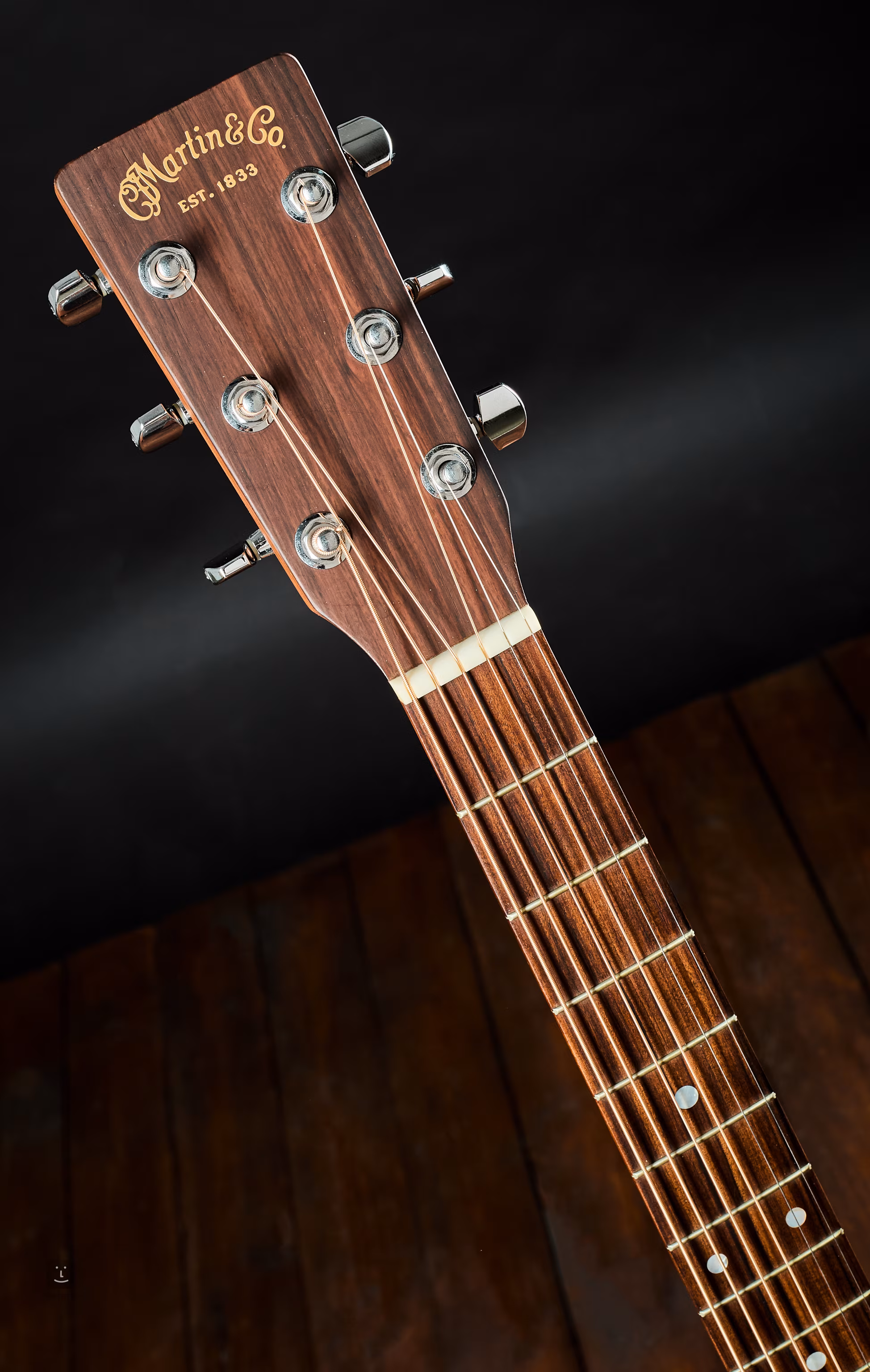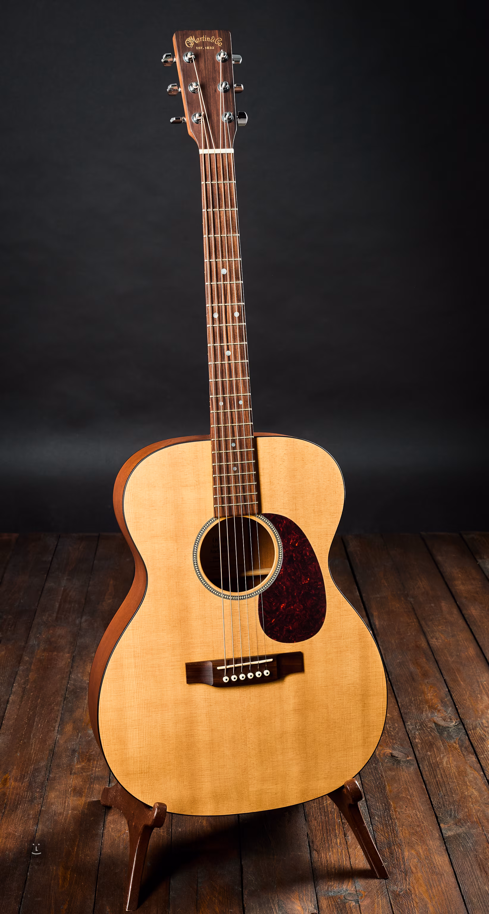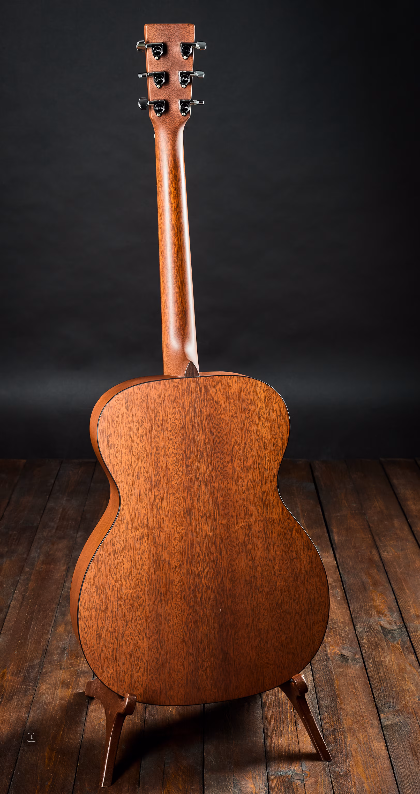 Triple en acajou, parfois aussi auditorium, avec table en épicéa de la célèbre marque Martin. L'instrument a été fabriqué à Nazareth, aux États-Unis, en 2002.