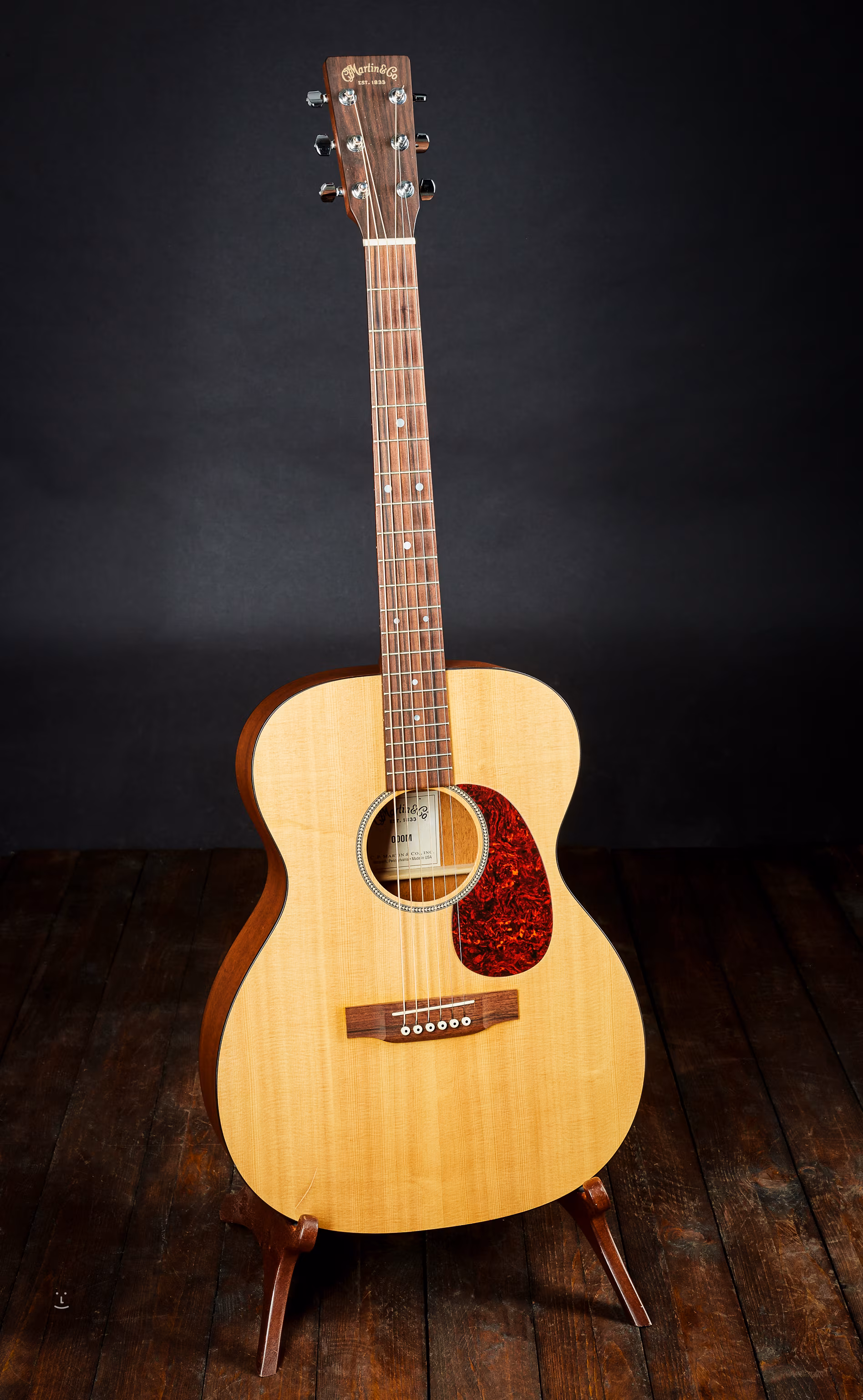 Le Martin OOO-M est un instrument plus petit appelé auditorium (également "triple o" ou "triple o" en tchèque) avec une table d'harmonie en épicéa massif, un dos et des éclisses en acajou. La touche et le manche sont en palissandre. La jauge standard est de 648 mm, la largeur de la frette zéro est de 43 mm.