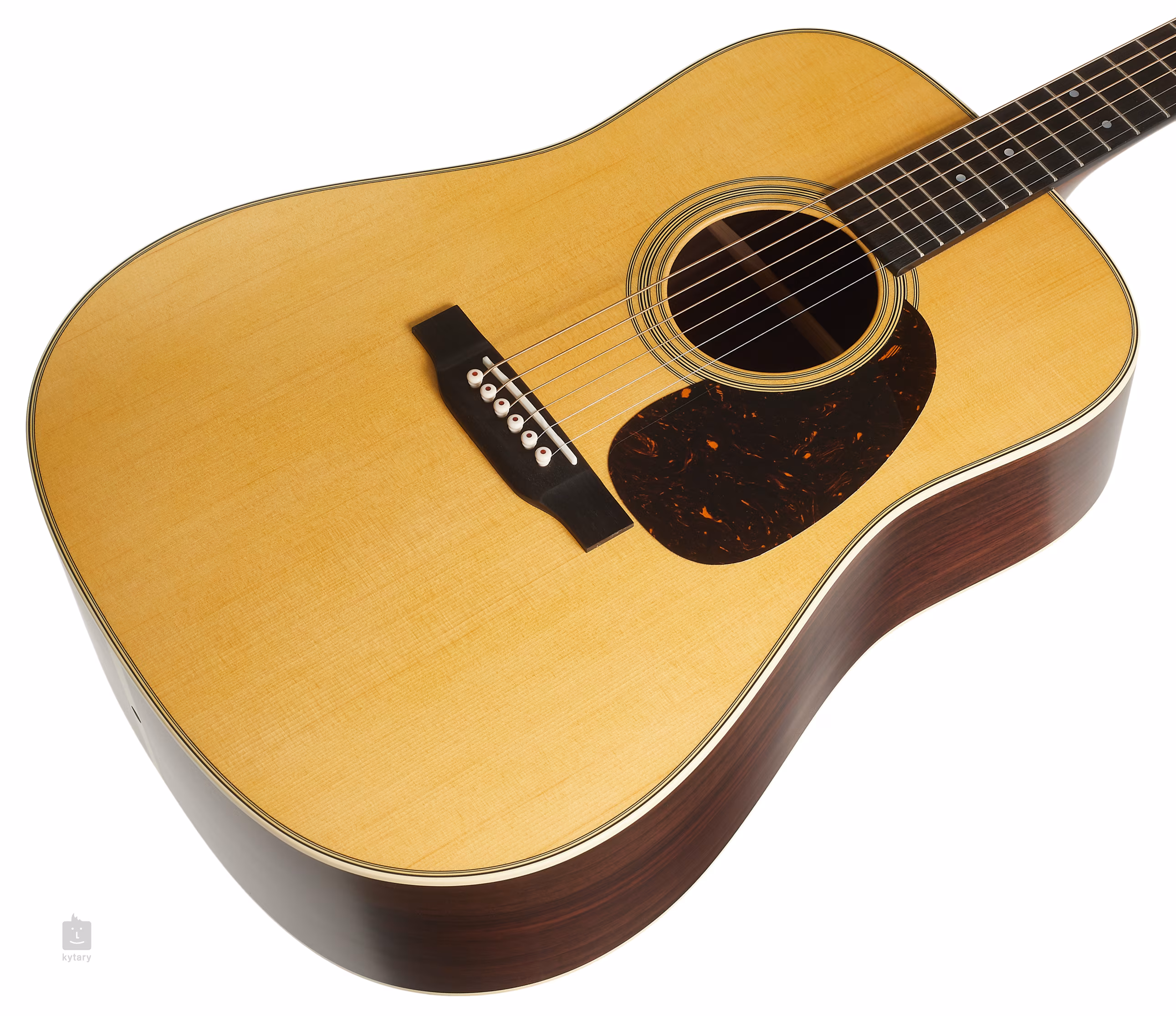 Le manche en acajou est collé à une touche en ébène dotée de vingt frettes. L'orientation sur la surface de la touche est facilitée par des points de positionnement en perle. Un sillet en os compensé monté sur une touche en ébène confère aux cordes, ainsi qu'à la touche en os, une grande résonance et un bon maintien. Un pickguard imitation écaille de tortue protège la laque de la guitare des rayures causées par les coups de médiator. La finition élégante est accentuée par la finition satinée du corps et le logo Martin sur la tête.