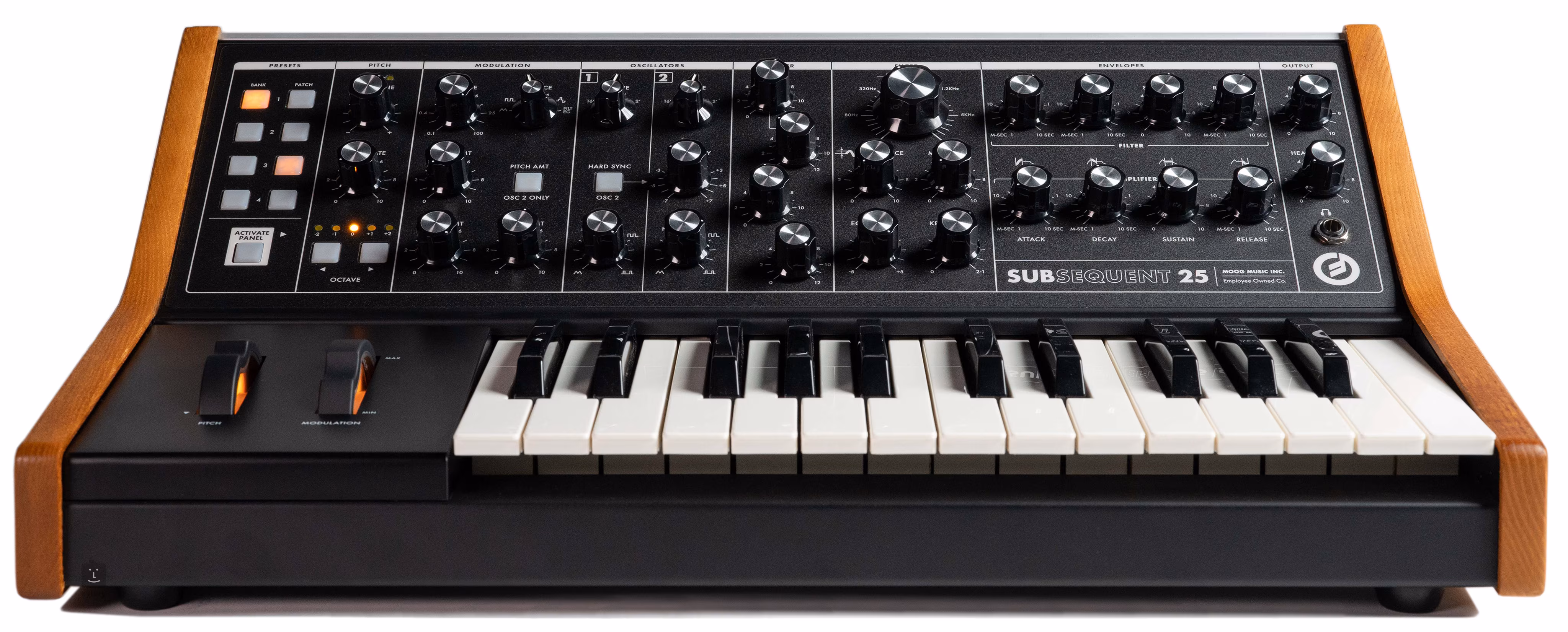 Les synthétiseurs analogiques sont toujours très populaires. MoogMusic a toujours été un innovateur majeur de ces instruments. Le synthétiseur dispose de fonctions de modulation classiques, d'oscillateurs générateurs de sons et de quelques caractéristiques uniques, notamment la mémorisation des réglages. Le gros avantage est le son "épais" spécifique et incomparable.