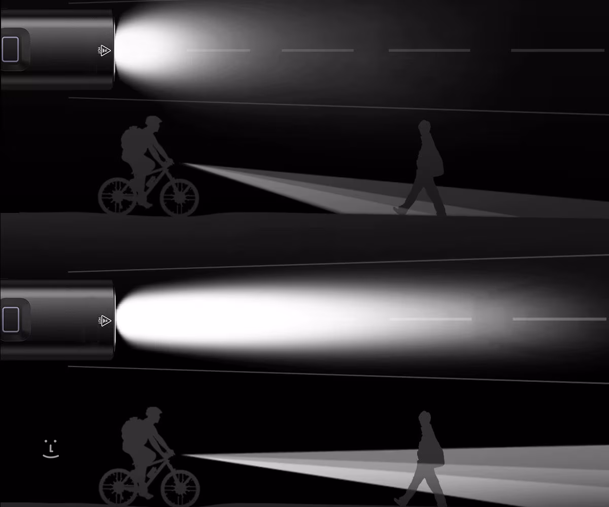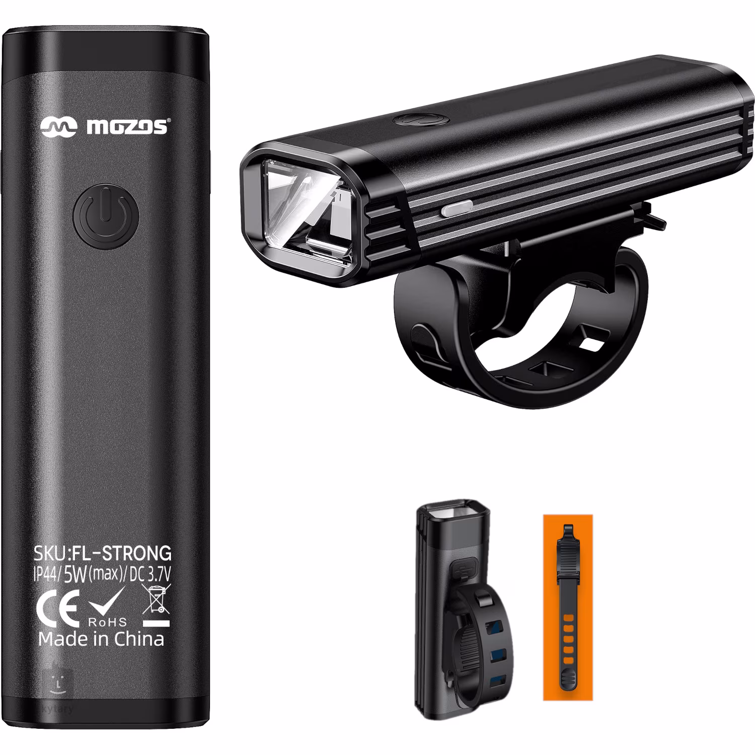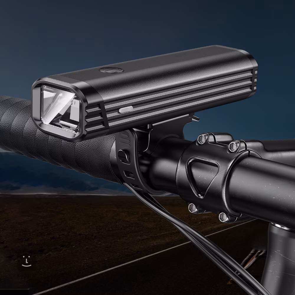 Feu avant de vélo très performant, d'une puissance de 5 W et d'une portée allant jusqu'à 120 m. La lumière dispose de deux modes d'alimentation et de quatre modes d'éclairage. La batterie intégrée dure jusqu'à 3 heures d'éclairage sur une seule charge, puis se recharge via un câble USB-C. Une sangle pour l'attacher au guidon est incluse.