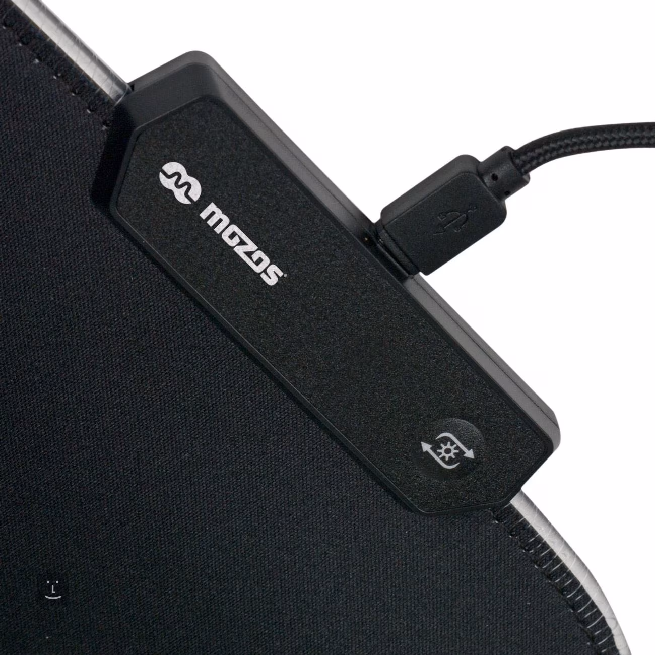 Le tapis de souris Mozos Gaming-MP RGB améliorera votre confort de travail et de jeu. La surface souple et spacieuse est résistante aux éclaboussures et facile à nettoyer grâce au matériau multi-spandex. Le dessous du tapis est en caoutchouc naturel, qui s'adapte à différentes surfaces et qui est sans danger pour la santé et l'environnement. En outre, il assure la stabilité du tapis et l'empêche de glisser sur la planche.