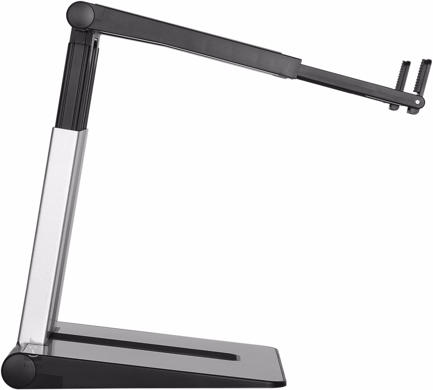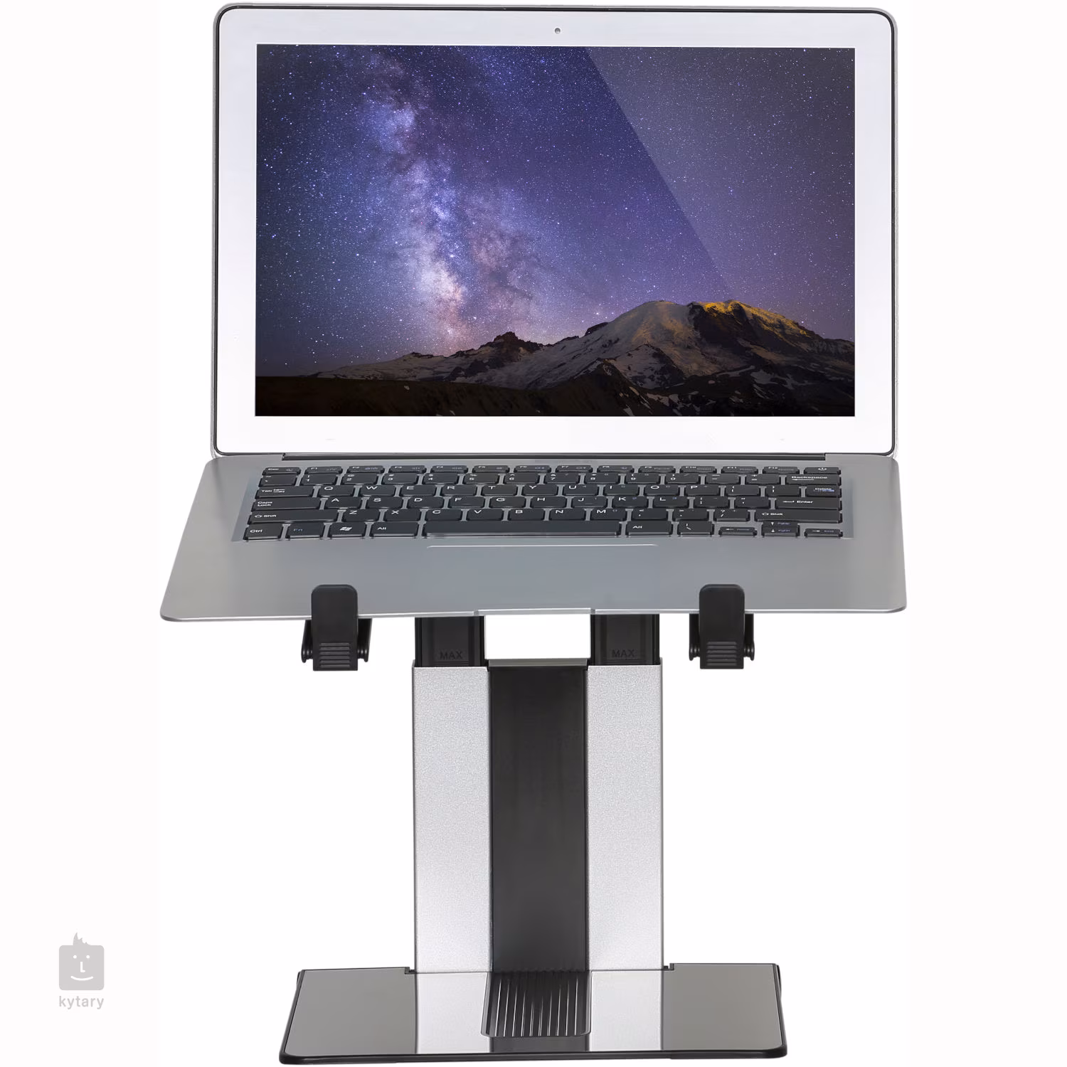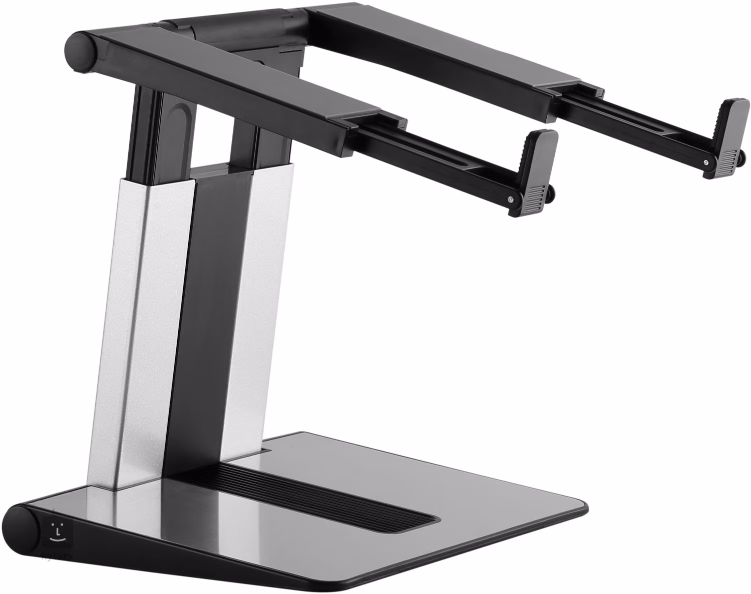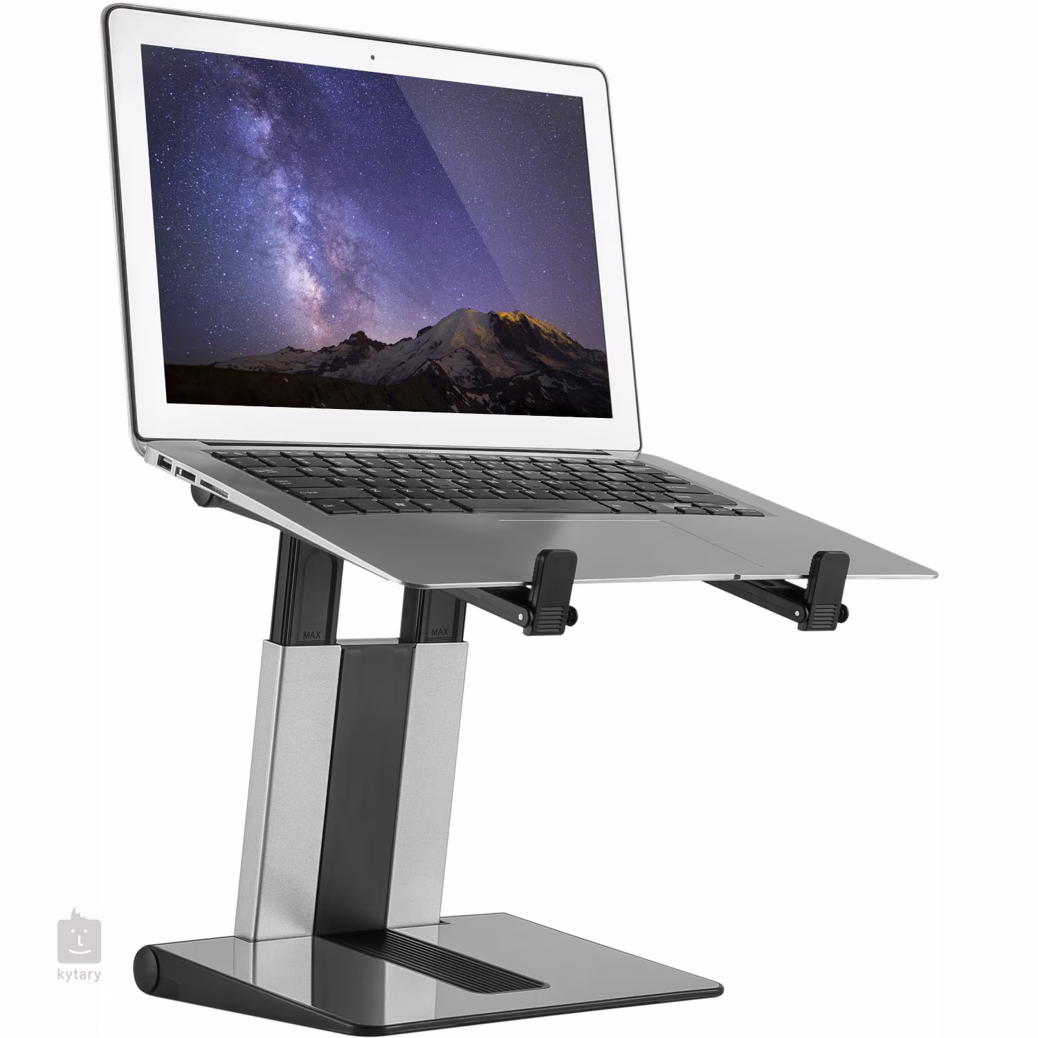 Support pour ordinateur portable en aluminium de haute qualité avec sept positions de réglage en hauteur (207 - 267 mm), surface de base antidérapante et conception pliable.
