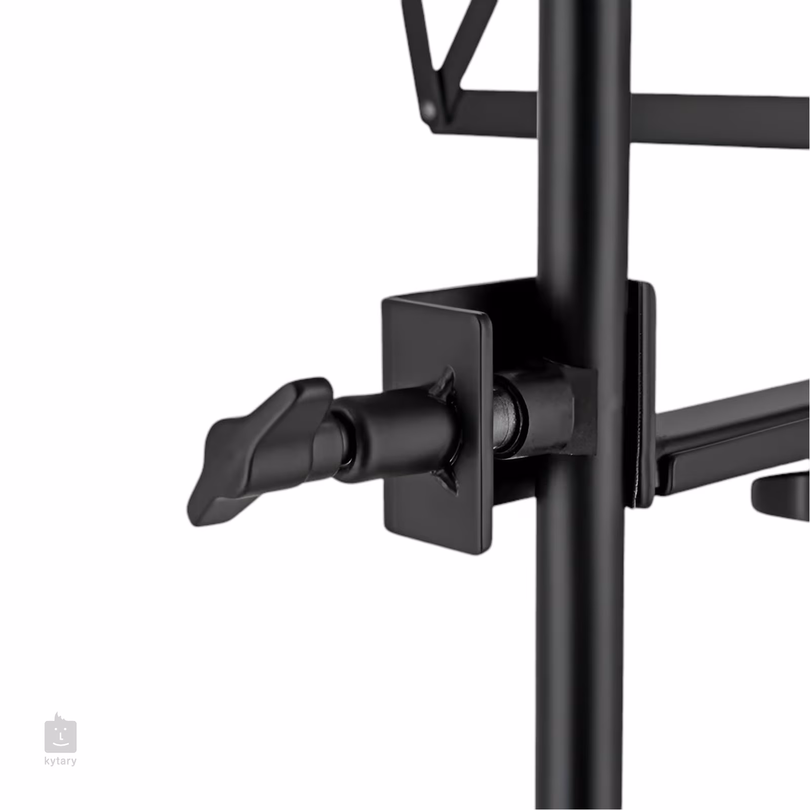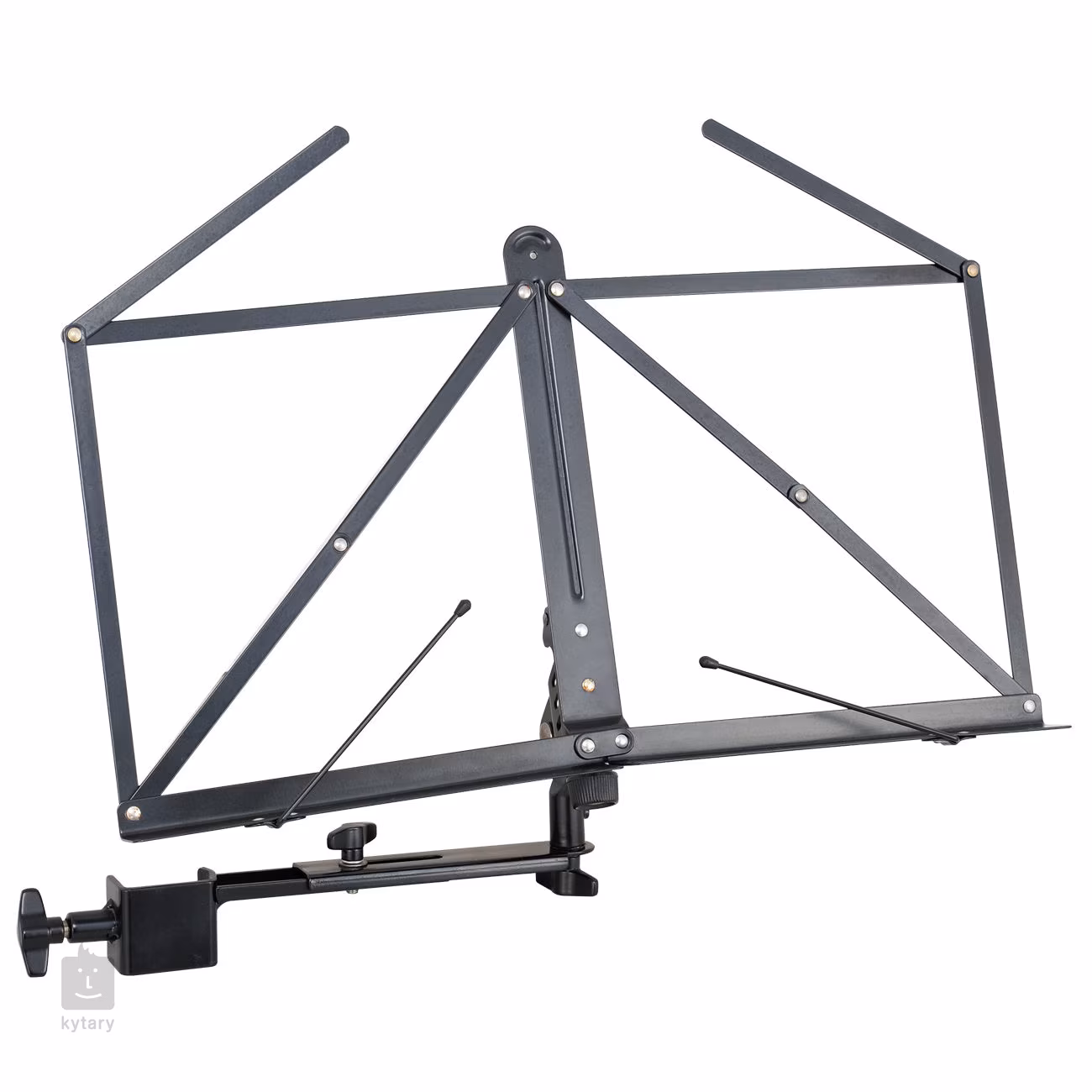 Le Mozos MSH1 est un pupitre pratique en métal qui se fixe simplement aux pieds de microphone à l'aide d'un support. Les dimensions du pupitre sont de 450 x 223 mm, ce qui offre beaucoup d'espace pour les partitions, les livres, les tablettes et autres accessoires. La capacité de charge maximale du pupitre avec support est de 1,5 kg, et la longueur du support peut être réglée entre 140 et 180 mm. Avec un poids léger de 0,89 kg, un transport facile et une installation rapide, le pupitre Mozos MSH1 est un outil précieux pour tous les musiciens qui doivent souvent se déplacer rapidement d'un endroit à l'autre.