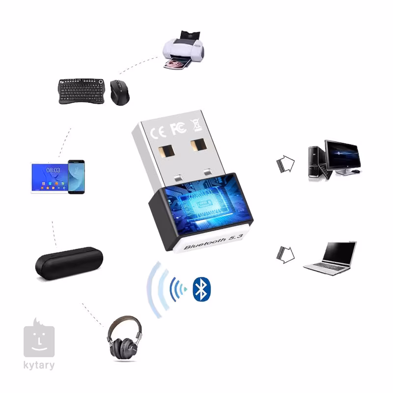 Le Mozos RTL812 est un récepteur et émetteur Bluetooth 5.3 pratique qu'il suffit d'installer dans une prise USB 2 ou USB 3 pour bénéficier instantanément d'une transmission sans fil pour un maximum de 7 appareils, même avec la rétrocompatibilité BT 2.0. Vous pouvez ainsi connecter facilement un clavier, une souris, un casque sans fil ou une imprimante et, bien sûr, écouter de la musique en continu sur votre ordinateur qui ne dispose pas d'un module BT intégré sur la carte mère.