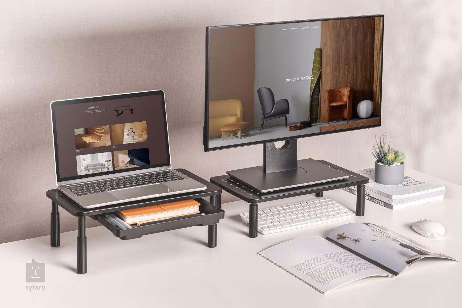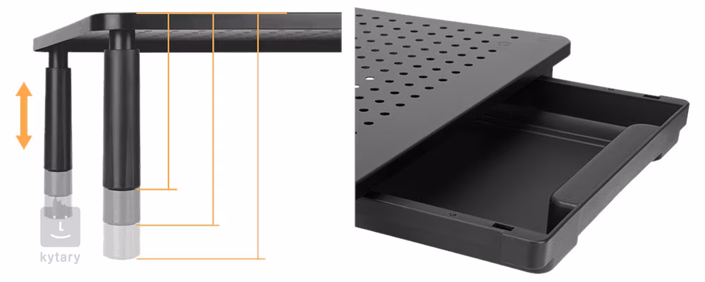 Caractéristiques principales > L'ergonomie avant tout - en élevant l'écran ou l'ordinateur portable à la hauteur optimale, il réduit les tensions sur la colonne cervicale et améliore le confort général au travail ; la hauteur est réglable en trois étapes. > Utilisation polyvalente - idéale non seulement au bureau mais aussi à la maison - sous un écran, un ordinateur portable, une imprimante ou même comme support élégant pour les décorations. > Le tiroir pratique offre un espace de rangement pour les petits objets tels que les stylos, les notes ou les câbles et contribue à maintenir votre bureau en ordre. > Robustesse et stabilité - la construction en acier et en matériaux de haute qualité garantit la durabilité et la stabilité, même en cas de charges lourdes. > Design simple mais élégant - L'aspect minimaliste s'adapte à tous les intérieurs, que vous préfériez un style moderne ou classique. > Aménagement pratique - utilisez l'espace libre sous le support pour ranger votre clavier, votre souris ou vos documents.