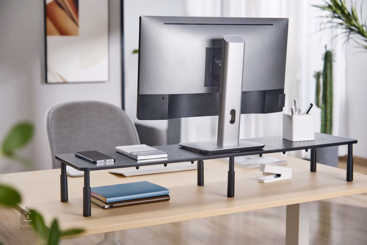 Ce support est la solution idéale pour ceux qui ont besoin de travailler efficacement avec plusieurs appareils tout en appréciant un design épuré et de l'ordre sur leur bureau.
