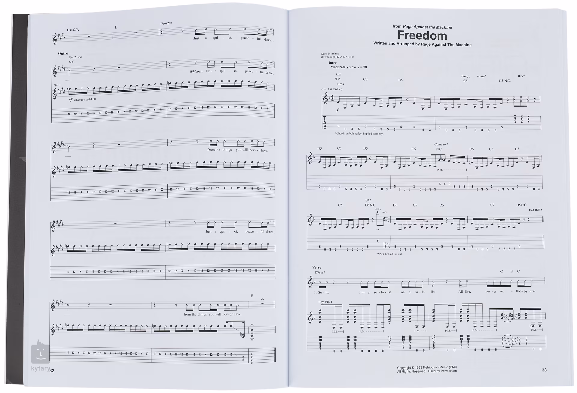 Rage Against the Machine - Guitar Anthology contient 14 chansons célèbres du groupe de rap metal américain Rage Against the Machine, enregistrées en tablatures et partitions de guitare.
