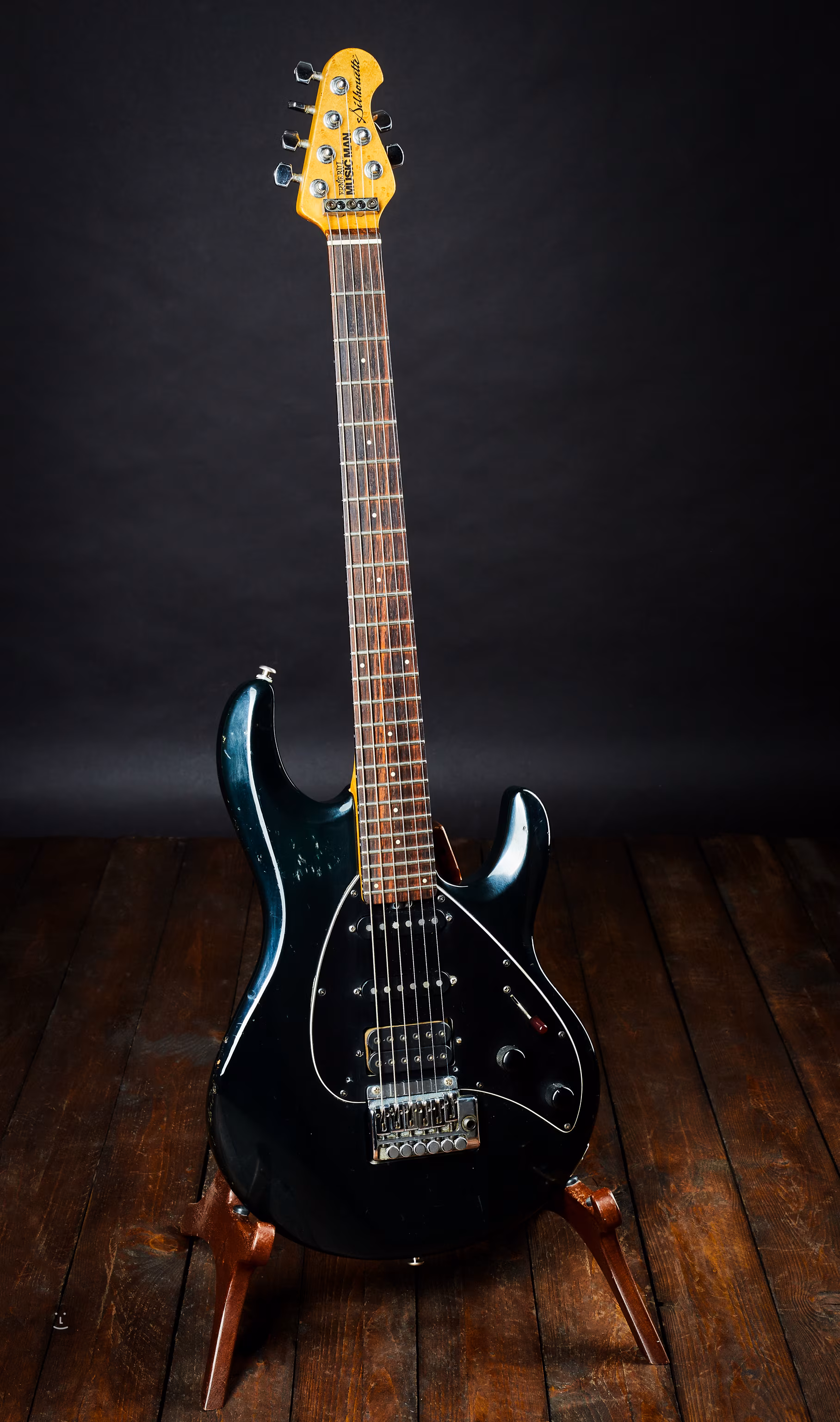 Trémolo et verrous MusicMan d'origine, mécaniques Schaller. Les micros sont des DiMarzio DP151 humbuckers au niveau de la tête, les micros devant et au niveau du manche ne sont pas marqués, mais à en juger par les soudures, ils sont d'origine (probablement des singles que DiMarzio a fait pour Music Man sur commande).
