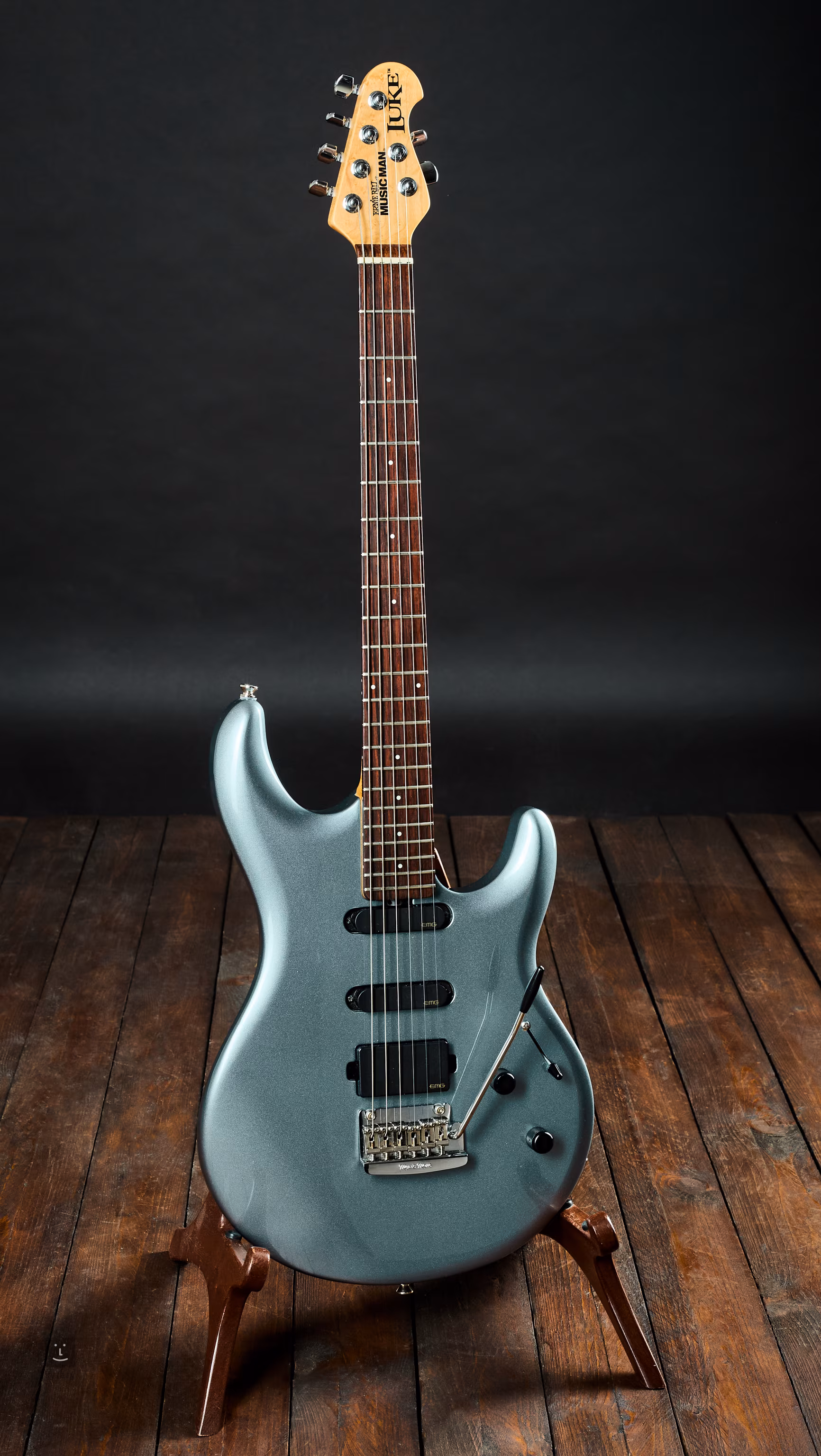 Modèle signature américain 2010 de Steve Lukather en Luke Blue original. La version II n'est plus en production et a un corps plus subtil que la plus récente III ou l'actuelle IV.