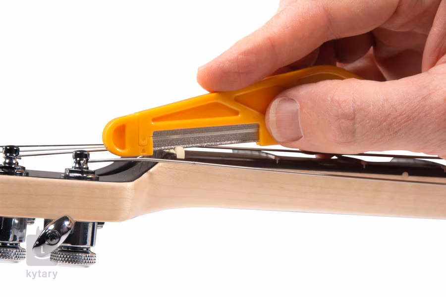 Ces limes brevetées sont utilisées pour créer ou élargir facilement et avec précision les sillons des cordes sur le manche. Elles sont dotées de lames abrasives recouvertes d'un revêtement diamanté industriel spécial qui reproduit fidèlement la forme réelle de la corde. Cela permet un meulage facile et des sillons précis qui ne nécessitent plus de polissage final. Les limes conviennent à tous les matériaux traditionnels tels que le nylon, le plastique, l'os, le graphite et le TUSQ, mais peuvent également être utilisées pour le ponçage des sillets de sauterelles. La lame de la lime est insérée dans un manche ergonomique dont elle peut être facilement retirée si nécessaire.