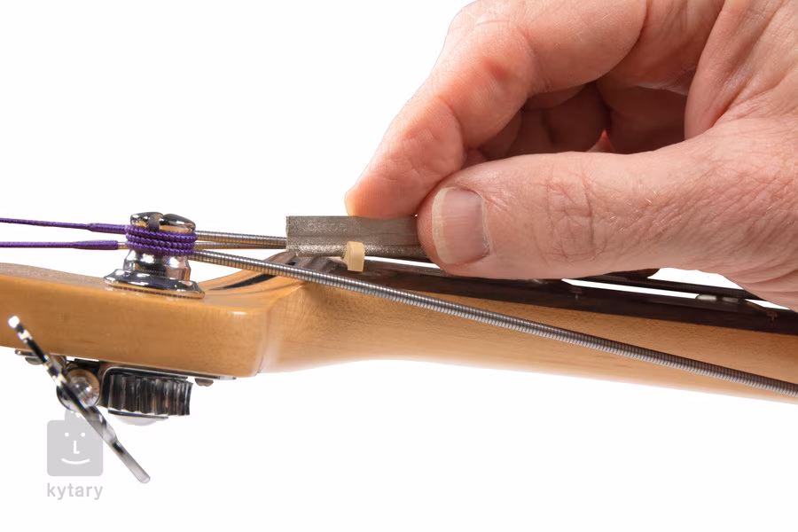 Ces limes brevetées sont utilisées pour créer ou élargir facilement et avec précision les sillons des cordes sur le manche. Elles sont dotées de lames abrasives recouvertes d'un revêtement diamanté industriel spécial qui reproduit fidèlement la forme réelle de la corde. Cela permet un meulage facile et des sillons précis qui ne nécessitent plus de polissage final. Les limes conviennent à tous les matériaux traditionnels tels que le nylon, le plastique, l'os, le graphite et le TUSQ, mais peuvent également être utilisées pour le ponçage des sillets de sauterelles. La lame de la lime est insérée dans un manche ergonomique dont elle peut être facilement retirée si nécessaire.