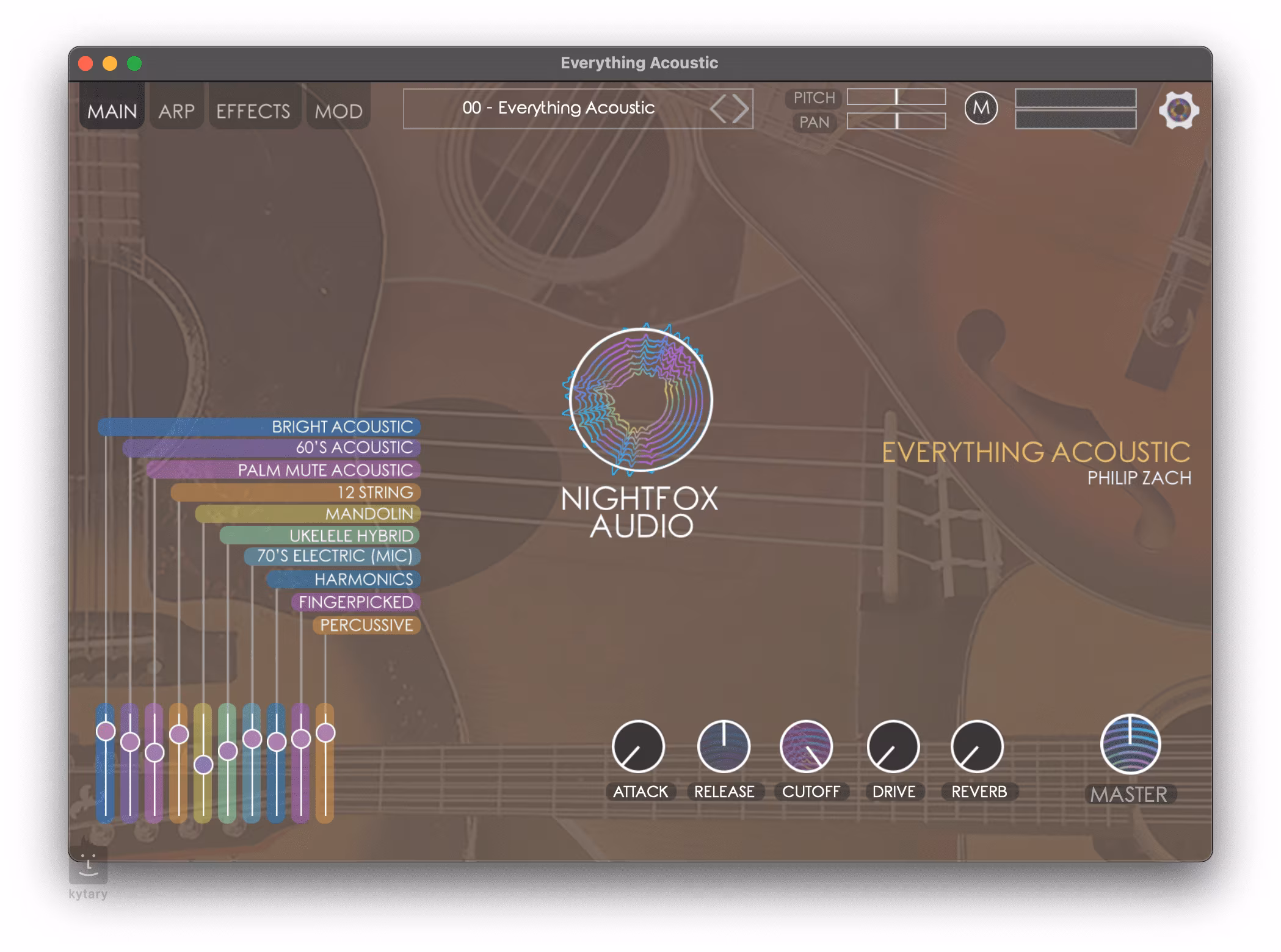 Nightfox Everything Acoustic est une collection étendue d'instruments acoustiques virtuels qui offre une grande variété de sons authentiques pour votre production musicale. Ce plugin est conçu pour les musiciens, les producteurs et les concepteurs sonores à la recherche de simulations d'instruments acoustiques réalistes pour un large éventail de genres et d'applications.